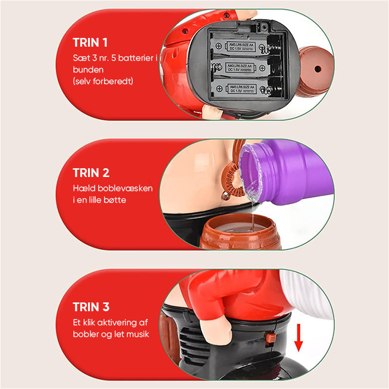 Sjov juleboblemaskine: Led med os gennem smukke ferier med denne sjove julemandsboblemaskine.