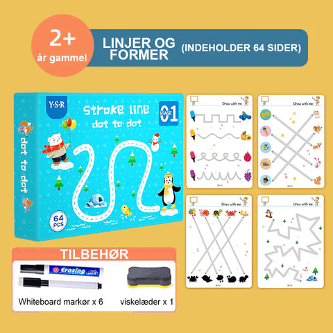 Med denne øvelsesbog vil du gennem leg understøtte dit barns grafomotoriske færdigheder og forberede dem til at lave bogstaver og tal.