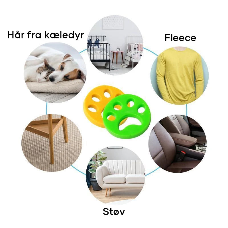 Tampen fjerner dyrehår fra dit tøj, mens den vasker og tørrer. Og den fungerer både i vaskemaskinen og i tørretumbleren.