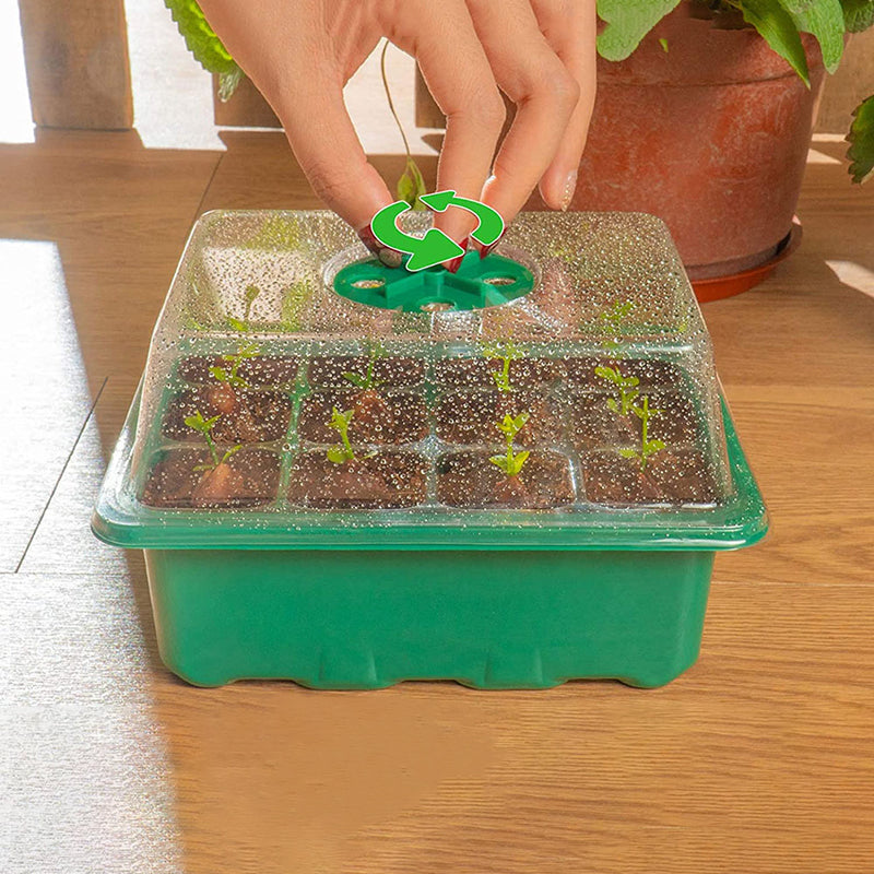 Justerbar luftfugtighed mellem 50-100%. Du kan nemt justere den indvendige luftfugtighed og temperatur ved at dreje regulatoren, for at imødekomme forskellige stadier inden for frø-til-frøplante-vækst. Ventilationshullerne er gode til den hurtige plantevækst og styrer spireprocessen fuldt ud.