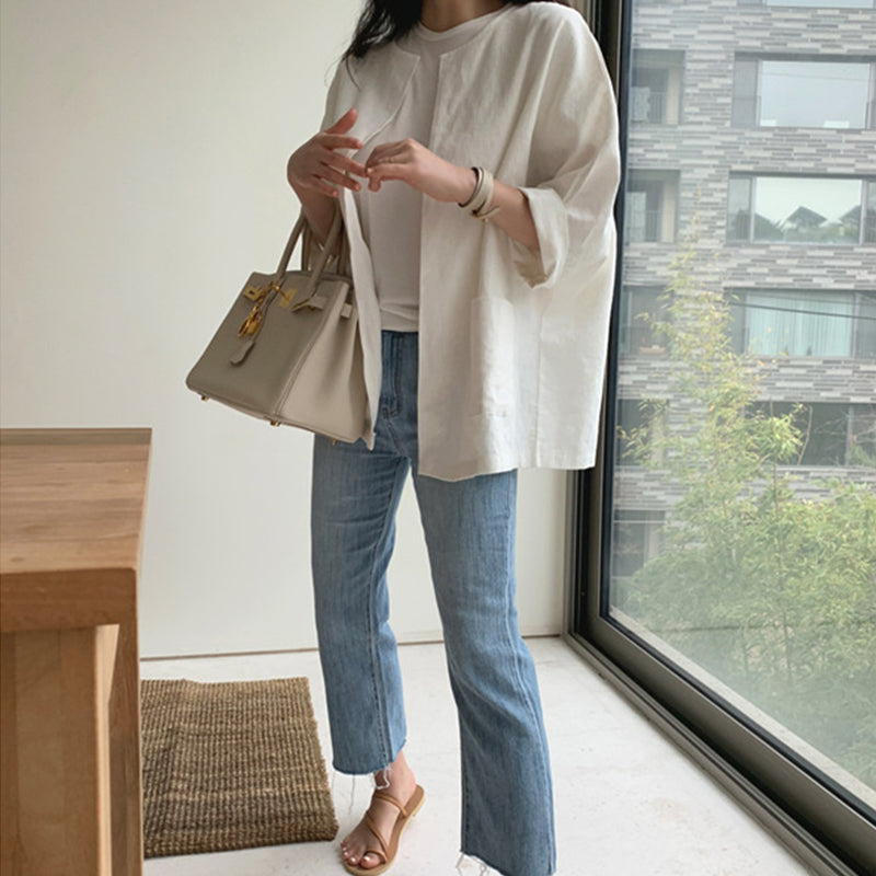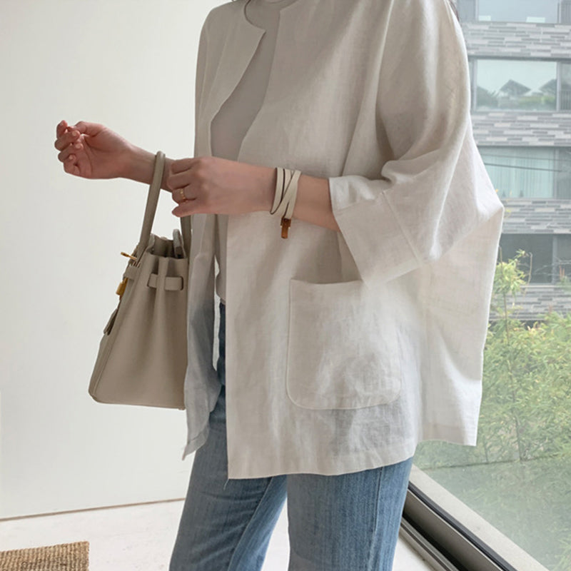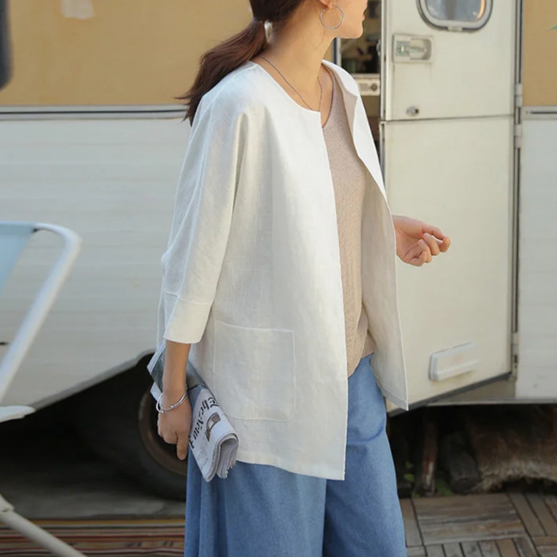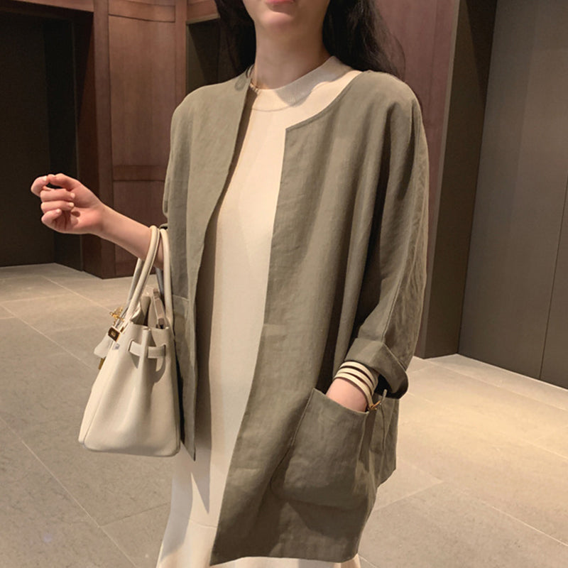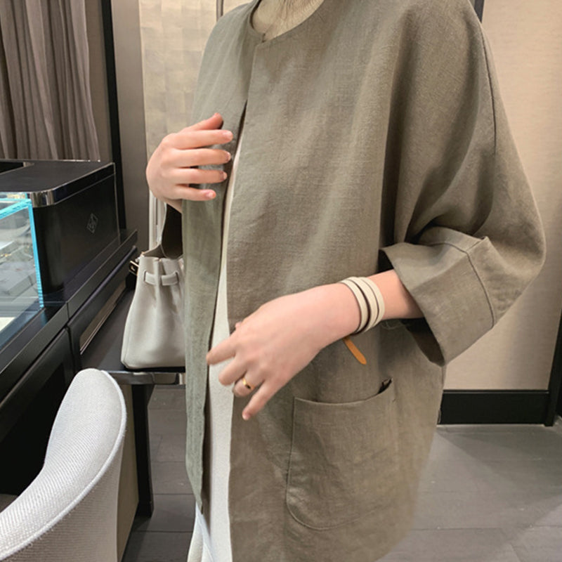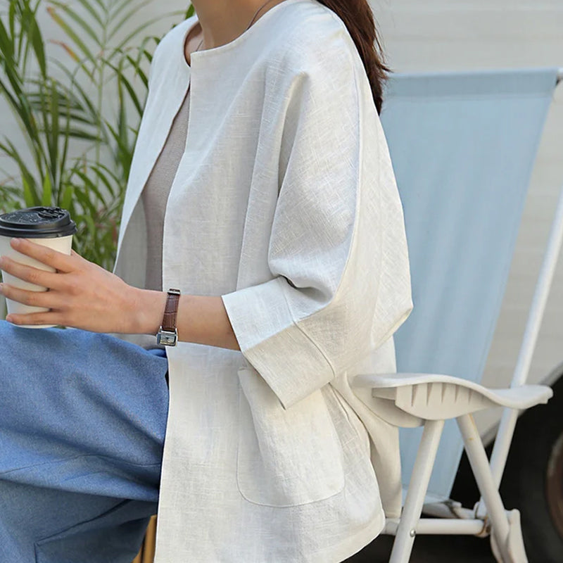 - 1*Løstsiddende frakke i bomuldblanding (is-silke og hør)