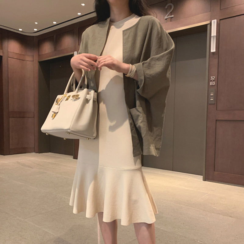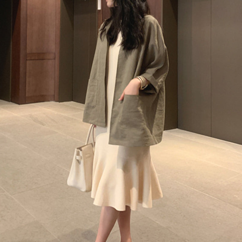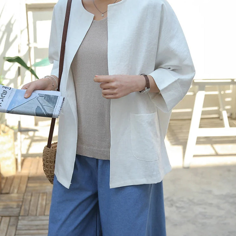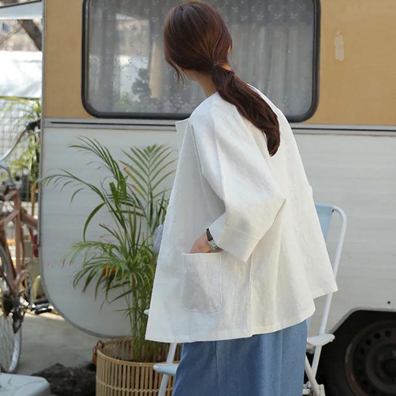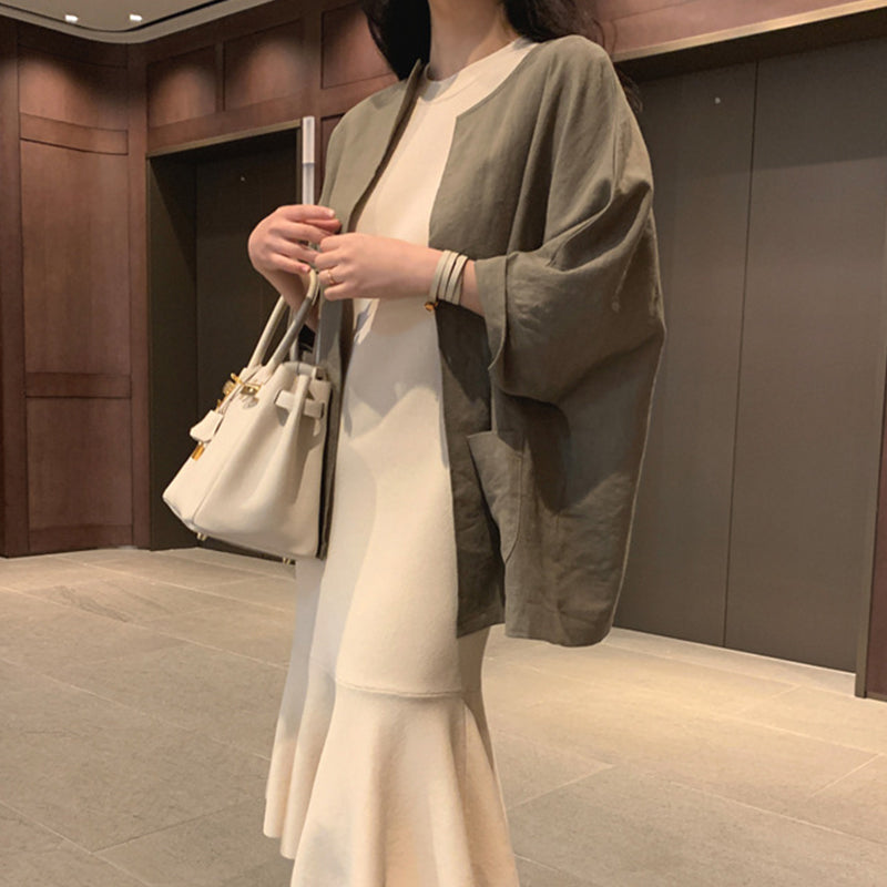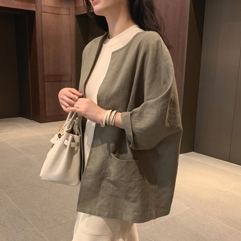 - 1*Løstsiddende frakke i bomuldblanding (is-silke og hør)