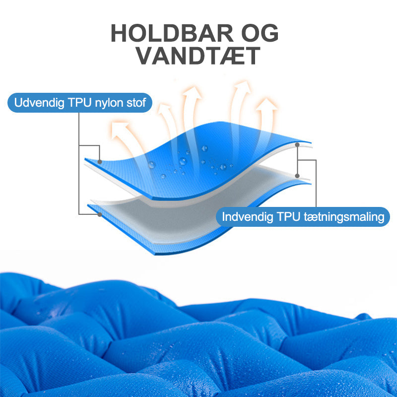 - Dobbelt luftventil: Det første lag er et envejs oppustningssystem for at forhindre luftlækage, og det andet lag kan tømmes hurtigt, når det åbnes, så du kan pumpe luften op og tømme den uden besvær.