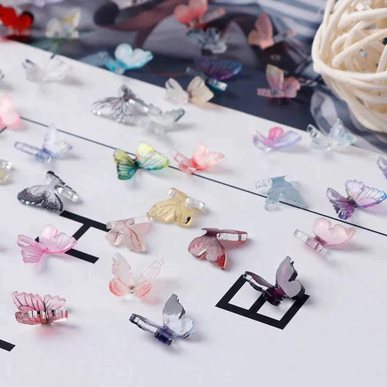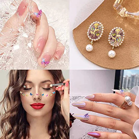 【Sommerfugledekorationer til neglekunst】 Smuk dekoration til neglekunst. Ikke alene dét, påfør også sommerfuglene på læber, øjne, ansigt og krop for at give dig selv en mere skinnende effekt. Det fortolker virkelig et forårslandskab.