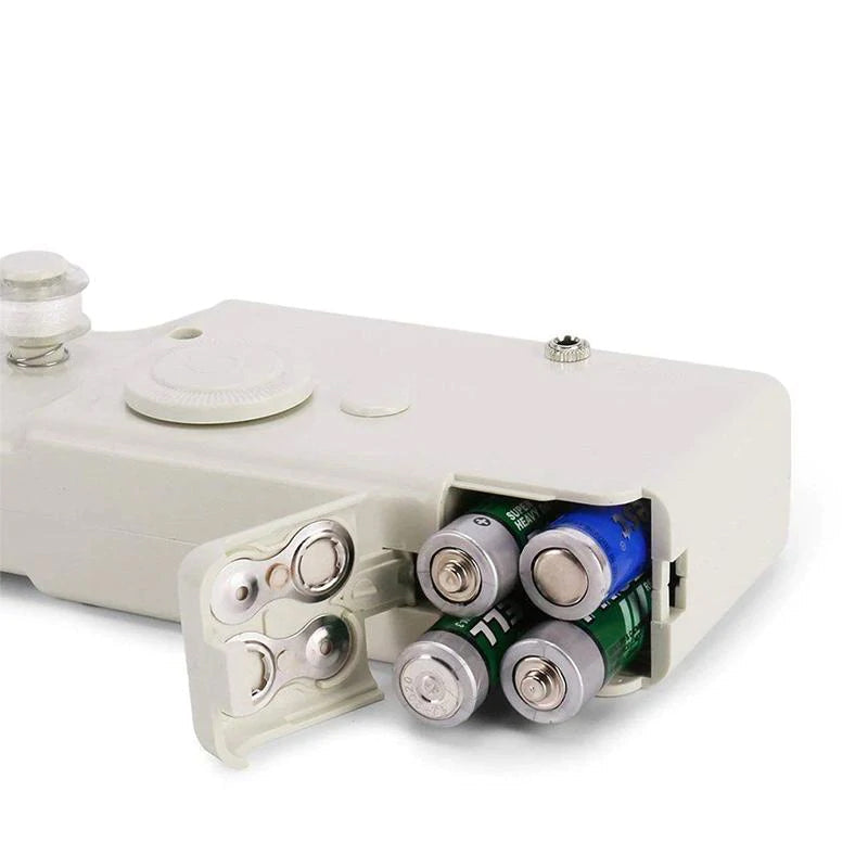 - Sparer tid og penge. Den har brug for 4 x AA-batterier (batterier medfølger ikke), den kan bruges efter opladning af ledningen, automatisk smart syning, er så meget hurtigere og nemmere end at bruge en nål.