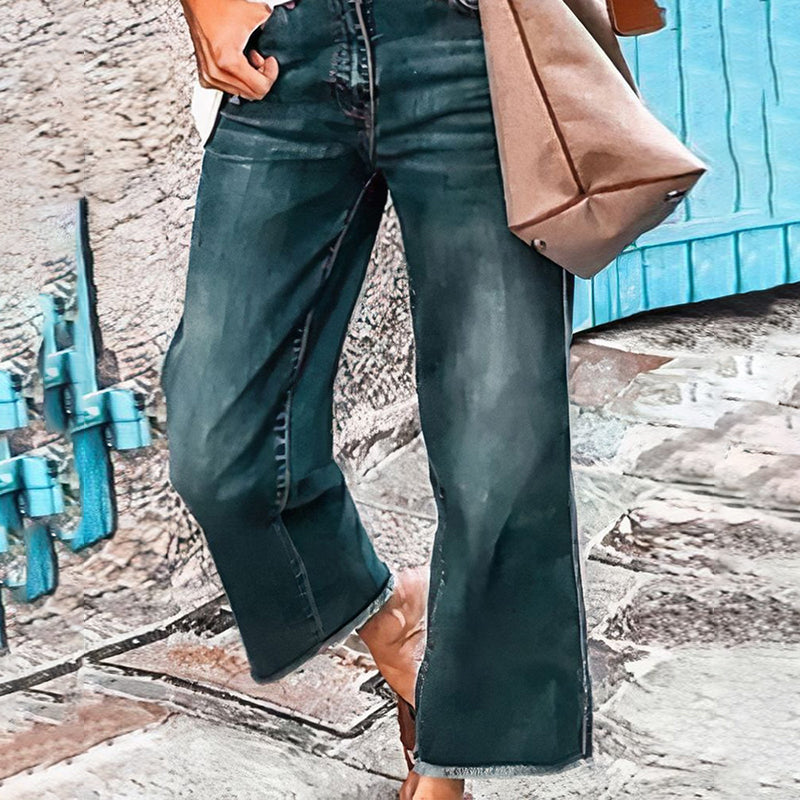 - 1 * Mørkvaskede Midtalje jeans med brede ben og rå syninger