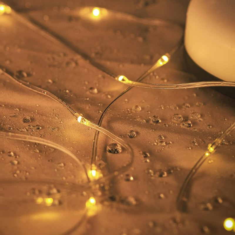 IP67 læderkabellys. Klart lys uden at flimre. Glat og struktureret yderlag med limbelægning, 360° belysning. Samtidig har lampebæltet god slagfasthed og kan bøjes, foldes og pakkes ind.