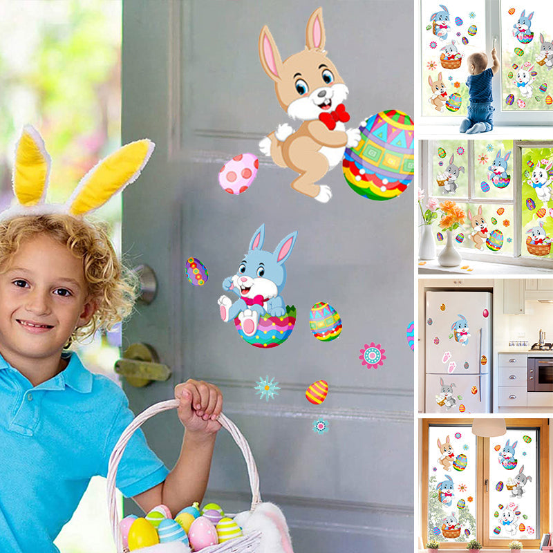 Påskevinduesklistermærker: Et stort antal glade påskeillustrationer og dekorative elementer, inklusive søde kaniner, påskeæg, blomster og guirlander. Du kan nu stå for din egen gør-det-selv dekoration og hjemmelayout, matche perfekt med andre påskedekorationer til at udstråle en følelse af forår.