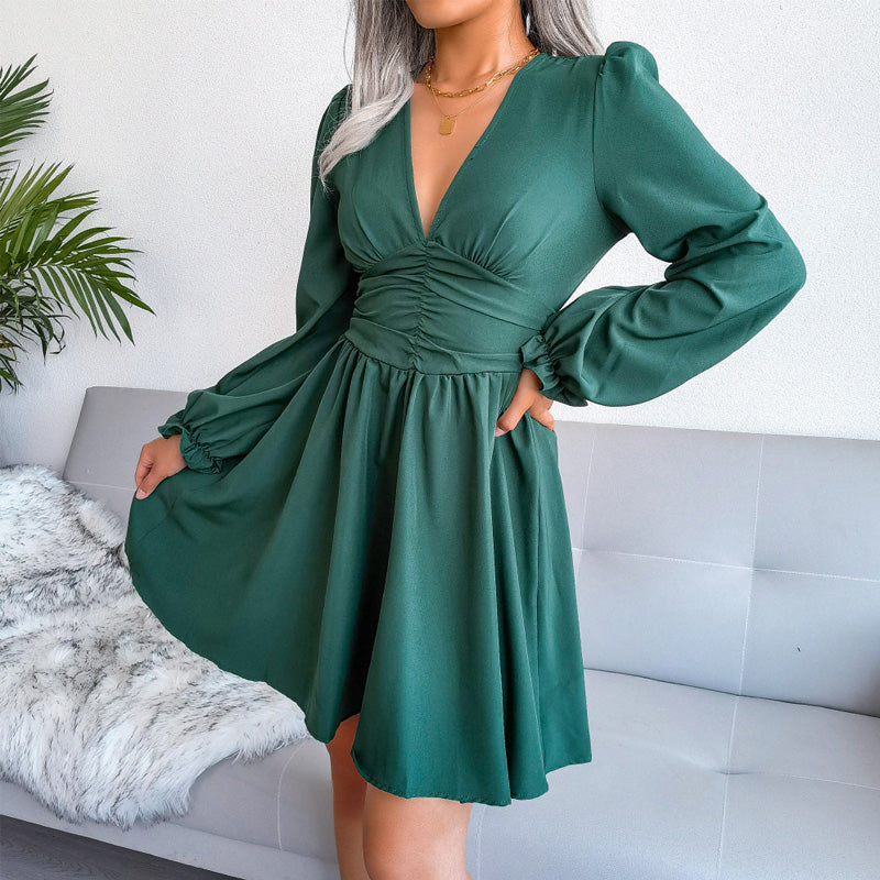 - 1*Plisseret kjole af chiffon i taljen med snæver talje