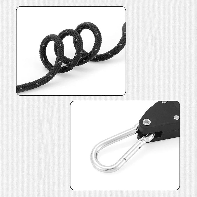 Multifunktionelt: Det justerbare reb kan bruges som et ophængsreb til at hænge bukser op på i vaskerummet. Du kan også bruge rebet som en fortøjning til din kajak, kano eller enhver mellemvægtig last til bilens tagbøjler eller anhænger.