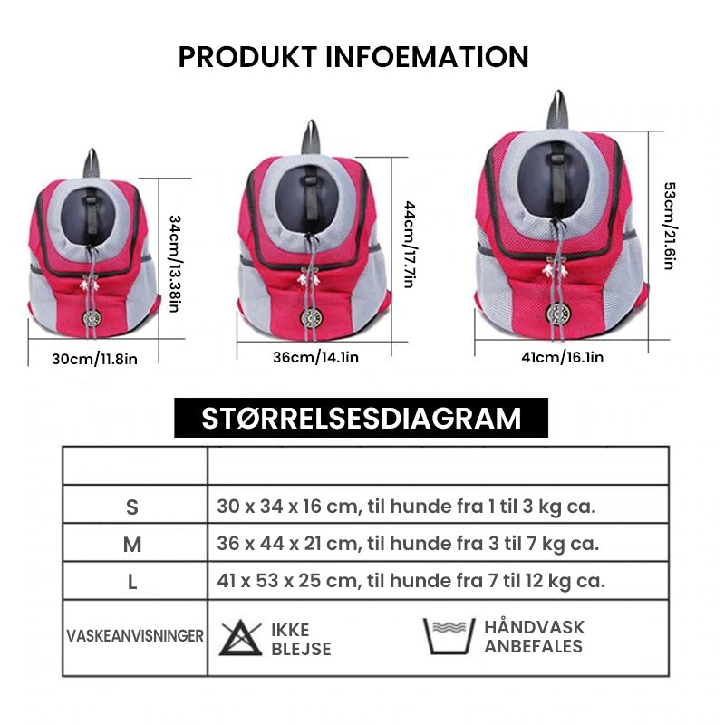 - Flere størrelser til rådighed, kan bære hunde på op til 12 kg!