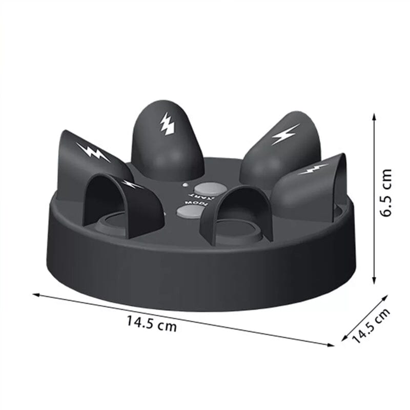 - Spillerne lægger fingeren i det lille hul, og indikatorlyset tænder tilfældigt. Når den summende lyd stopper, vil en af spillerne blive ramt af den virtuelle strømspænding.