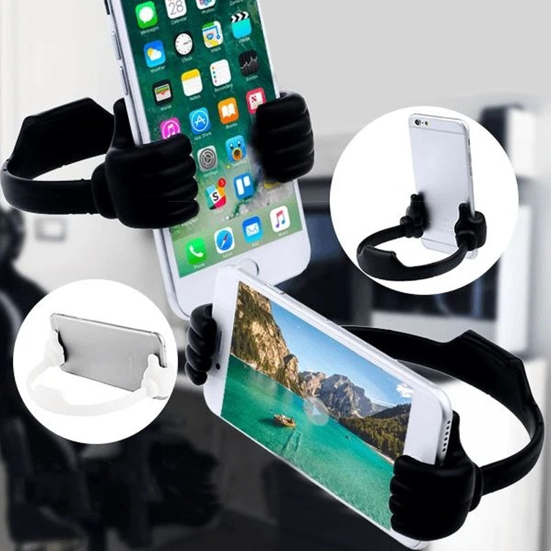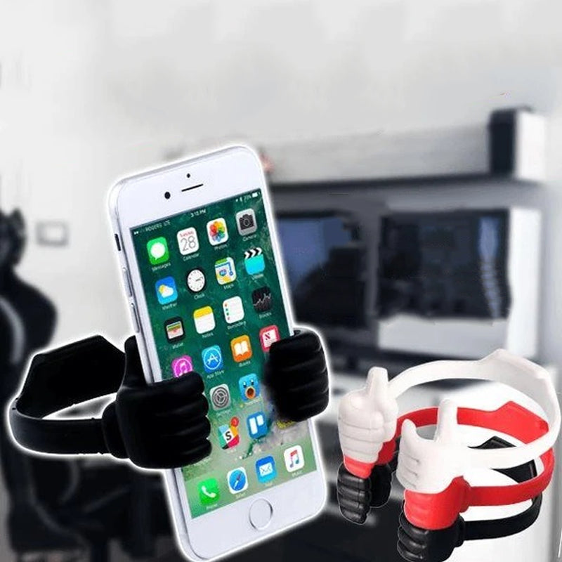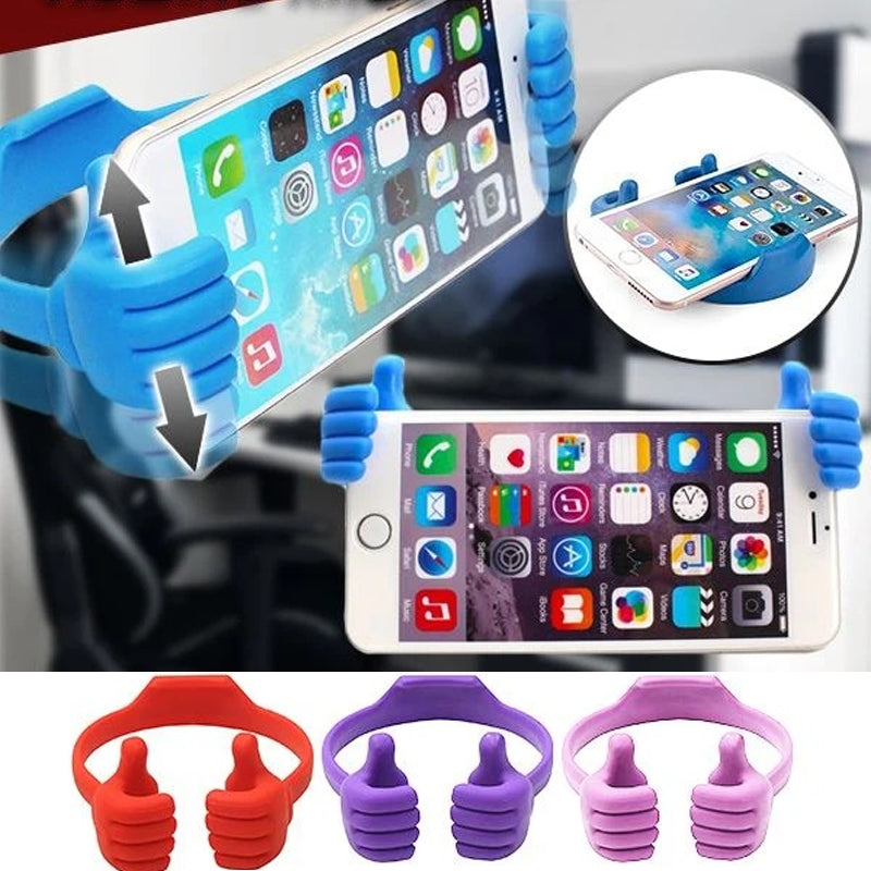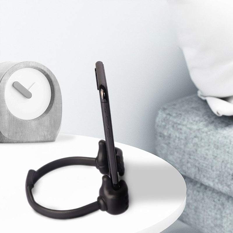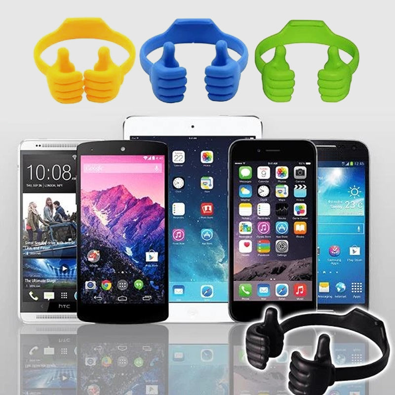 Thumbs up telefonstativet er designet med en tommelfinger op-form, som universelt "omfavner" de fleste telefoner, tablets og e-læsere på en sjov og kreativ måde.