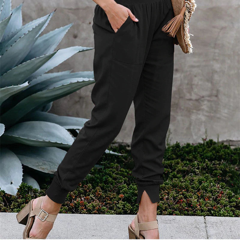 Slim Fit-design - De højtaljede casual bukser til kvinders design fremhæver din benlængde og får dig til at se højere og slankere ud. Den afslappede bukselængde er kun ankellang for at skabe en superflatterende silhuet.