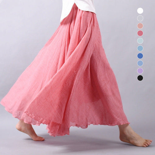 Enkeltfarvet Nederdel i Bomuld & Linned