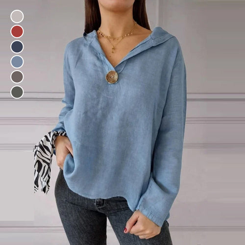 Sweatshirt med hætte og V-udskæring med en enkelt knap