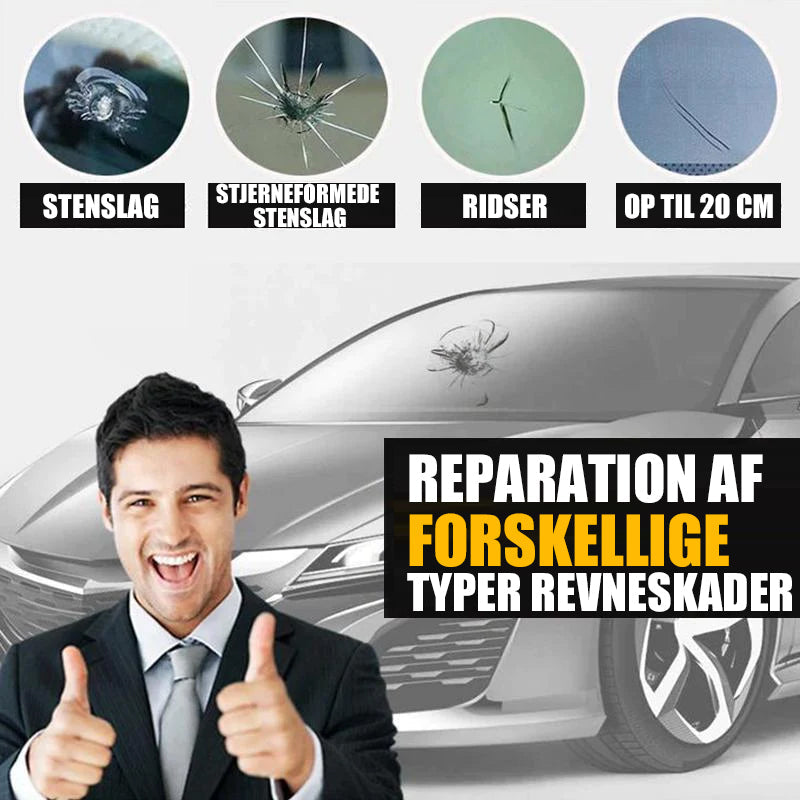Det kan reparere glasrevner, stenslag, stjerneskader og kombinationsbrud.