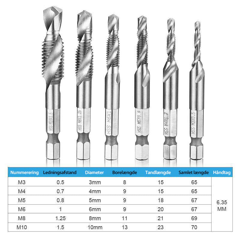 Metriske gevindskærebor 6 stk. (M3 - M10)