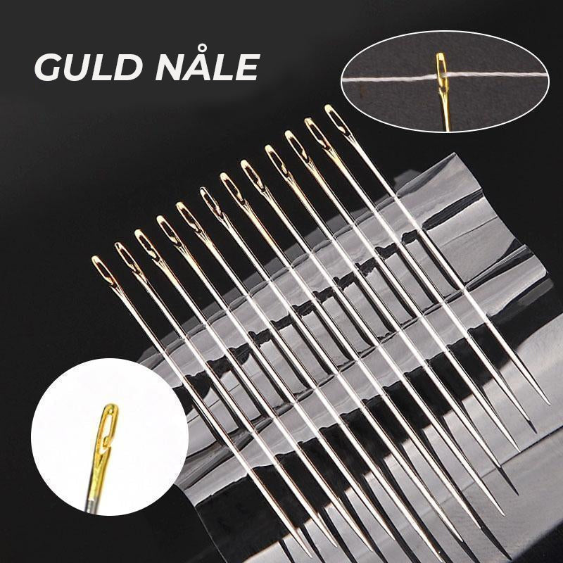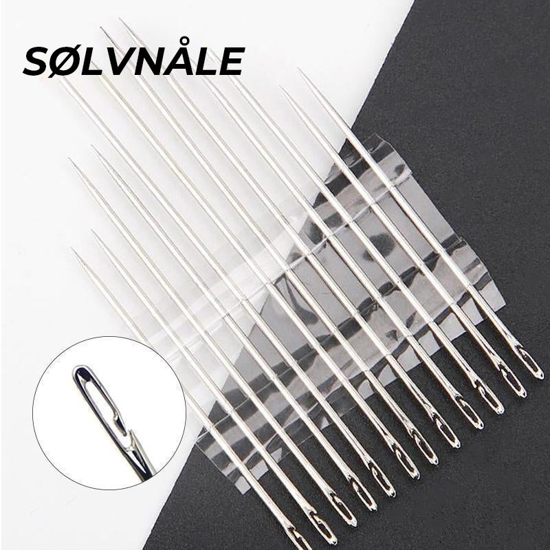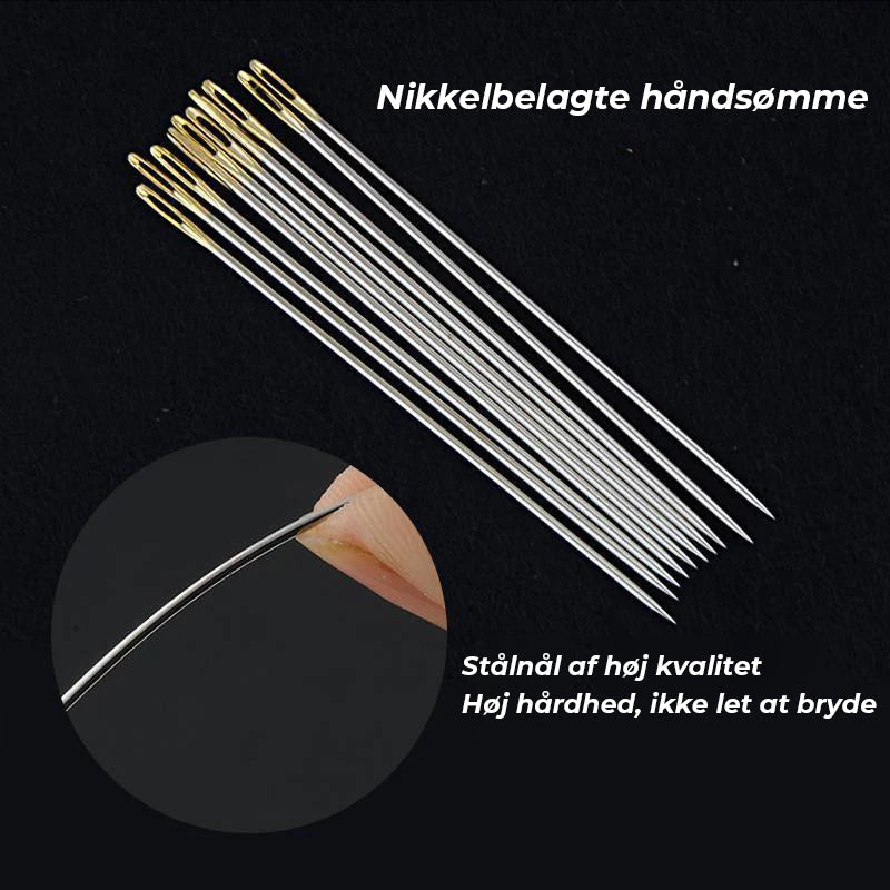 - 12 stk håndsynåle, stål, og forniklet, med fordeler (gennemsigtig top).