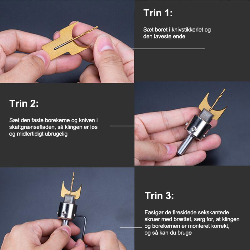 Fungerer med alle typer træ: Kan bruges på ibenholt, deftknuder, mahogni, sandeltræblod, palisander osv. Klingen kan selv udskære det hårdeste træ.