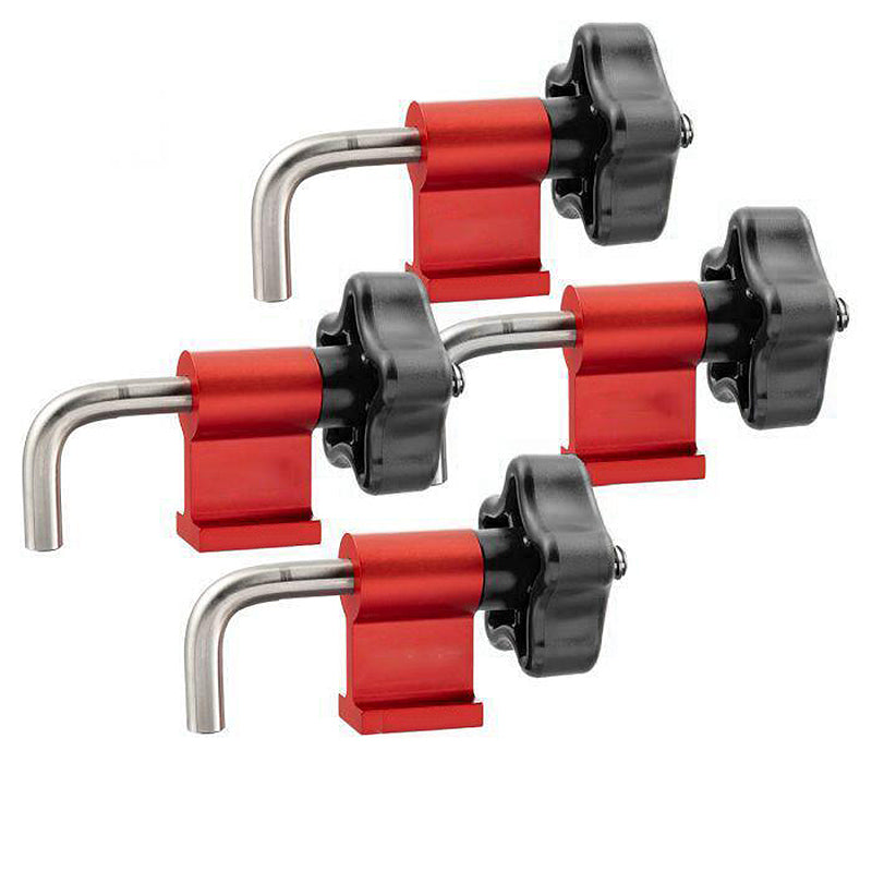 Vi har designet de nye CSP-klemmer som den perfekte ledsager til Clamping Squares Plus. De er mere praktiske end separate klemmer, da de låses direkte i hullerne på firkanterne. De store, grebsvenlige knapper strammer mere sikkert end de runde håndtag, der findes på de fleste klemmer. Den ekstruderede aluminiumspændekæbe vil ikke beskadige dit materiale med normalt spændetryk. Det hurtigt løbende Acme gevind snurrer hurtigt ned og låser fast.
