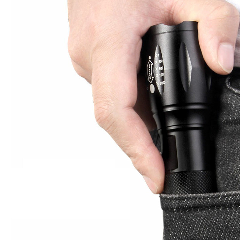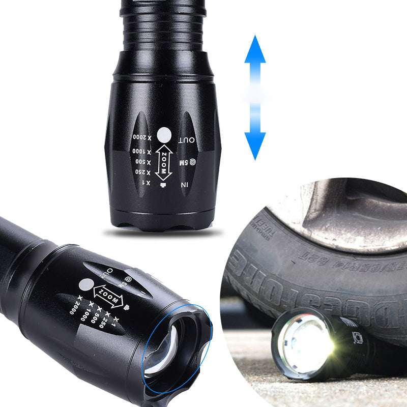 - Zoom + lang rækkevidde civil og militær multifunktionel zoom lommelygte med dobbelt design