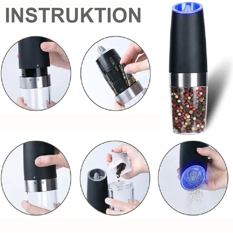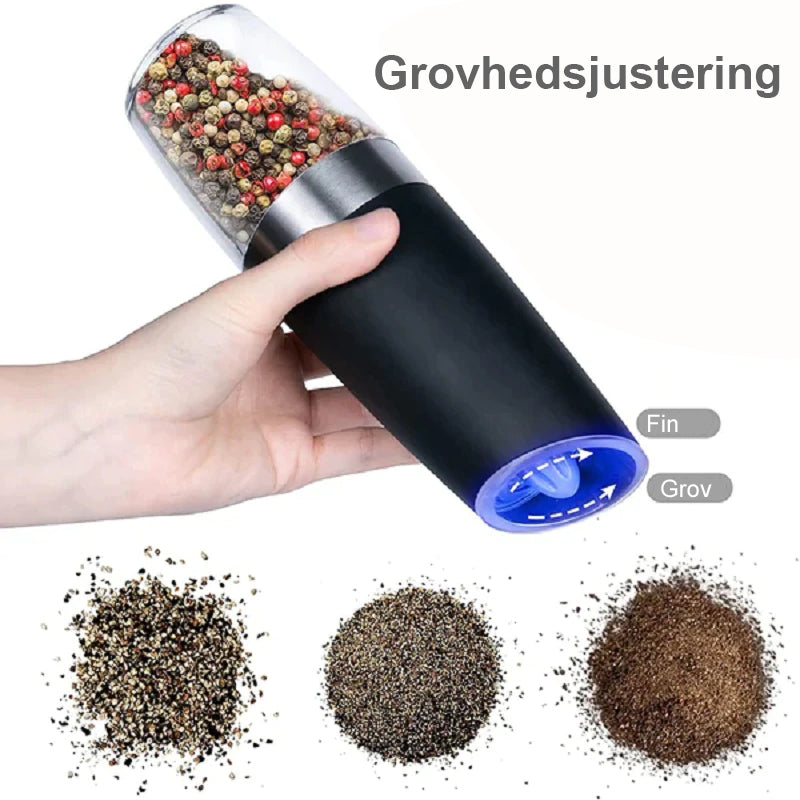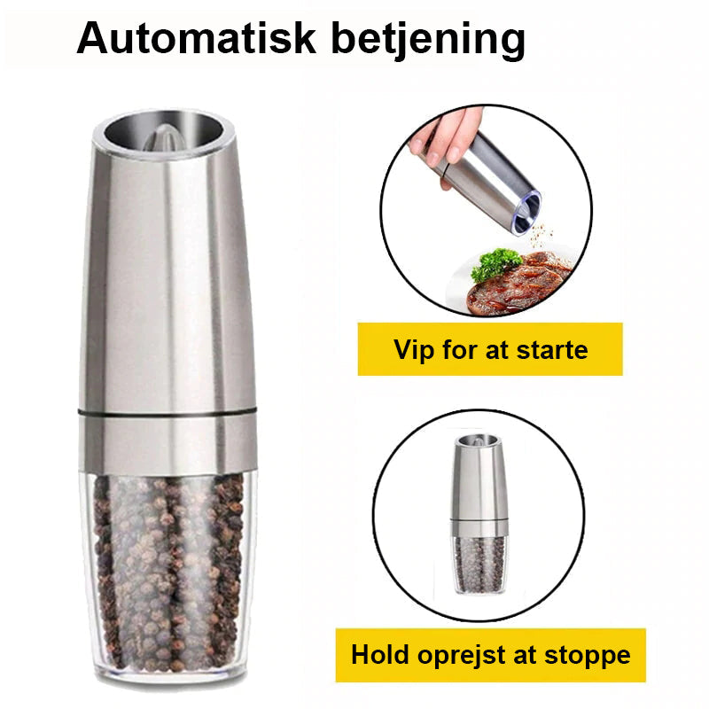 Vores fantastiske automatiske elektriske tyngdekraftsinduktion salt- og peberkværn har et avanceret tyngdekraftsfølende design, så der ikke bliver behov for manuelt at kværne! Du skal blot vende kværnen, så du får friskkværnede krydderier!