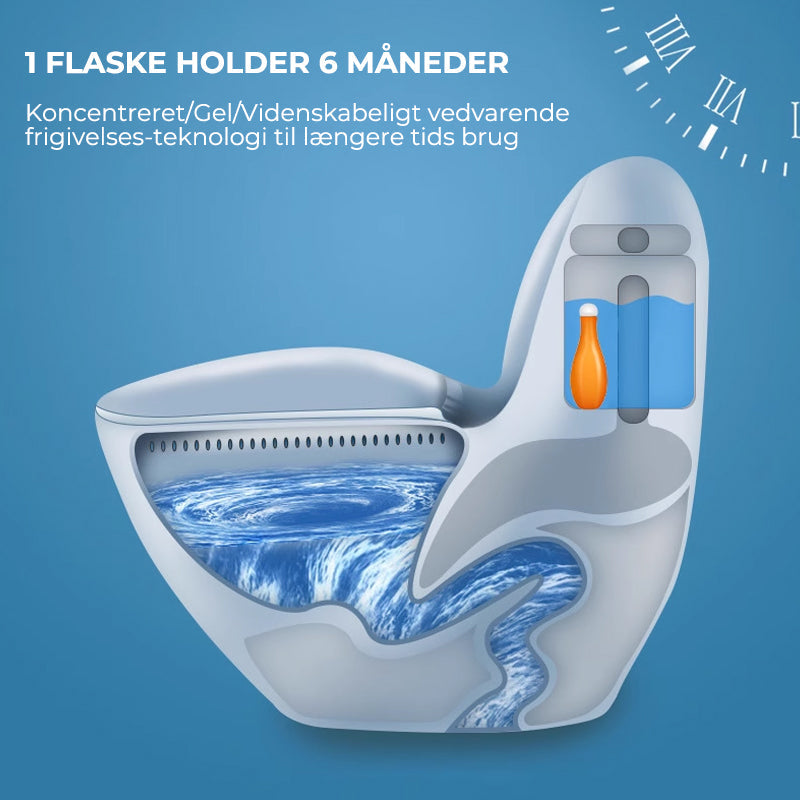 - 🚽 Produktet er primært til for at hjælpe med at holde en ren toilettank og reducere snavsophobningen i tanken. Rengør venligst toilettanken med en toiletbørste før første gangs brug, for bedre udnytte af dette produkts egenskaber.