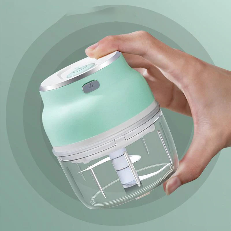 - Kraftfuld funktion - Drives af USB, genopladeligt. Tryk på knappen på toppen for automatisk at røre rundt i maden. Hvidløgshakkerens skarpe knive er hurtige til at hakke hvidløg, krydderier, nødder, grøntsager, kød, isterninger og meget mere,perfekt til små fødevarer. Du kan bruge den til madlavning, kosttilskud til babymad og smoothie-drikke.