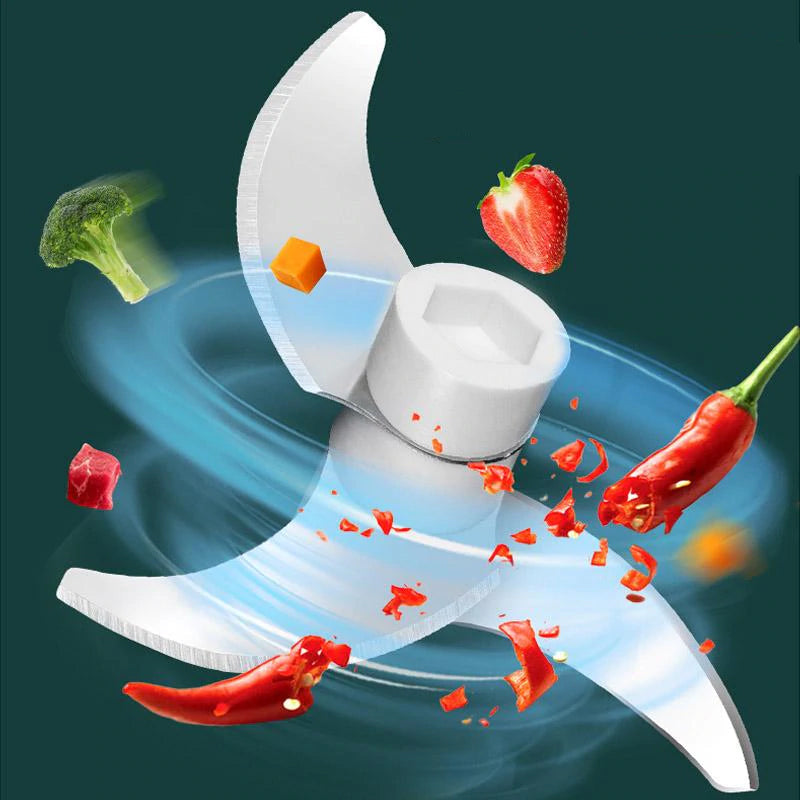 - Fantastisk køkkenhjælper - Vores elektriske madhakker er med 3 forstærkede knive, det vil ikke kun hjælpe dig med at hakke hvidløg, ingefær, peberfrugter, grøntsager og frugter, hvilket sparer tid og kræfter.