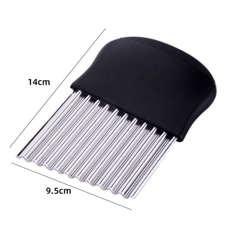 Det bølgede bladdesign øger madens overfladeareal, fremmer oxidation og gør den lettere at blødgøre og tilberede. Det reducerer også friktion og skader på maden, mens redskabet hjælper med at bevare madens form og tekstur. Derfor er det bølgede bladdesign bedre velegnet til fødevarer som kartofler og agurker, der skal bevare deres tekstur.
