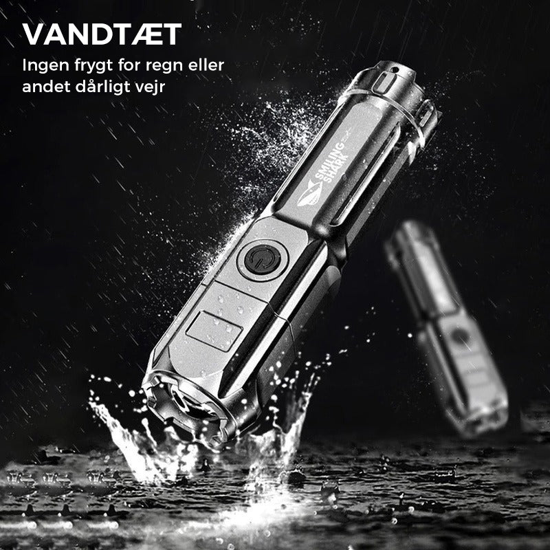 Den tilbyder stærk belysning og varierende lystilstande, der giver dig mulighed for effektivt at justere belysningen efter situationen, hvilket gør den til den perfekte ledsager i ethvert mørkt rum. Som en ekstra funktion er den lavet af holdbart, slagfast materiale, der gør den til et effektivt selvforsvarsværktøj.