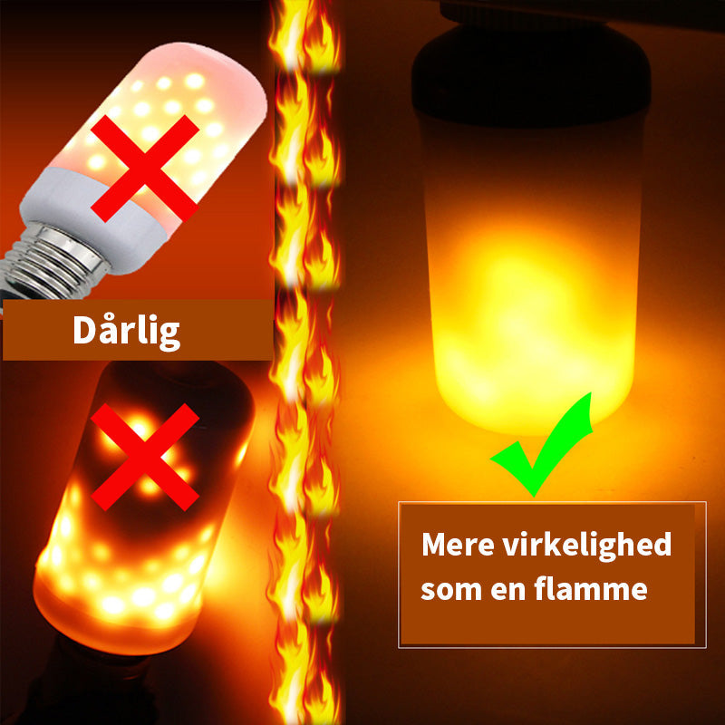 - ANDERLEDES END ANDRE LAMPESKÆRME: Vores lampefod med flammeeffekt er blank sort plast, så om natten ser du kun den åbne flamme. Vores flammepærer er kortere og bredere end andre flammelamper, hvilket gør dem velegnede til de fleste armaturer.