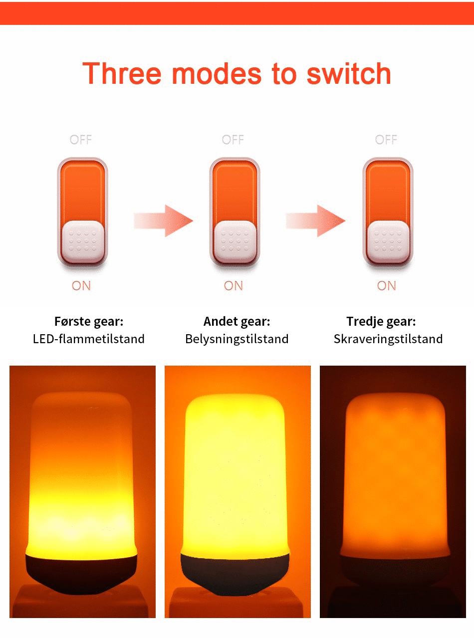 - BRUGSANBEFALING: For at opnå en bedre flammeflimrende effekt, bedes du installere pæren i en matteret glas lampeskærm, lanterne, saltlampe osv. Kunstigt levende flammer, der dynamisk bevæger flammerne og simulerer en naturlig flamme.
