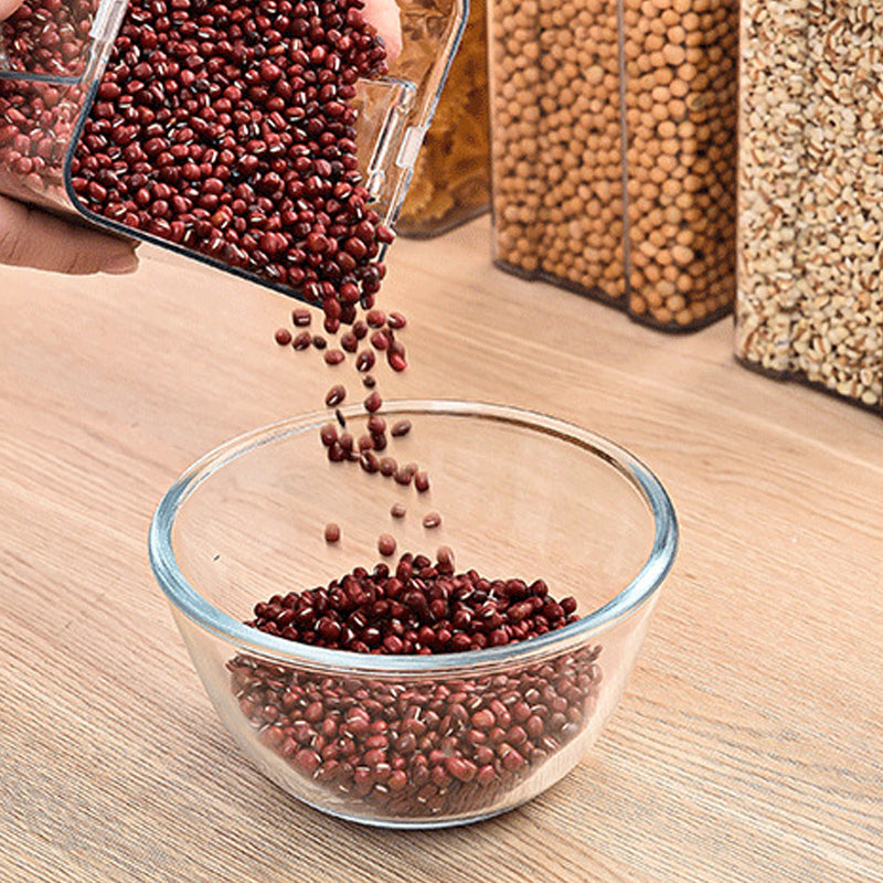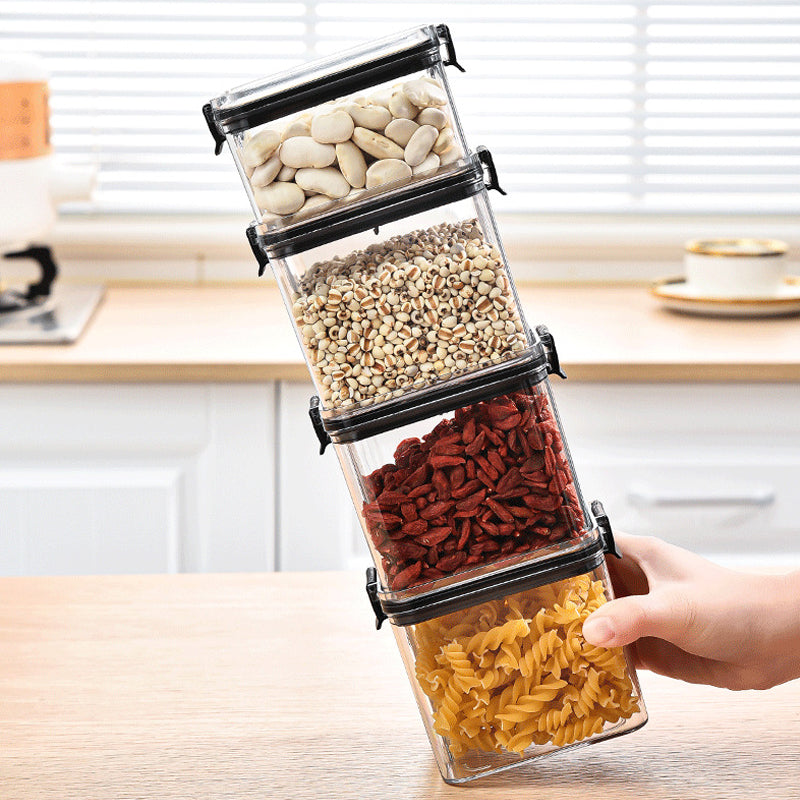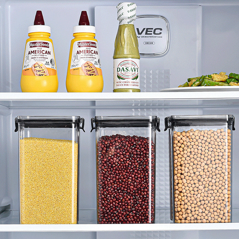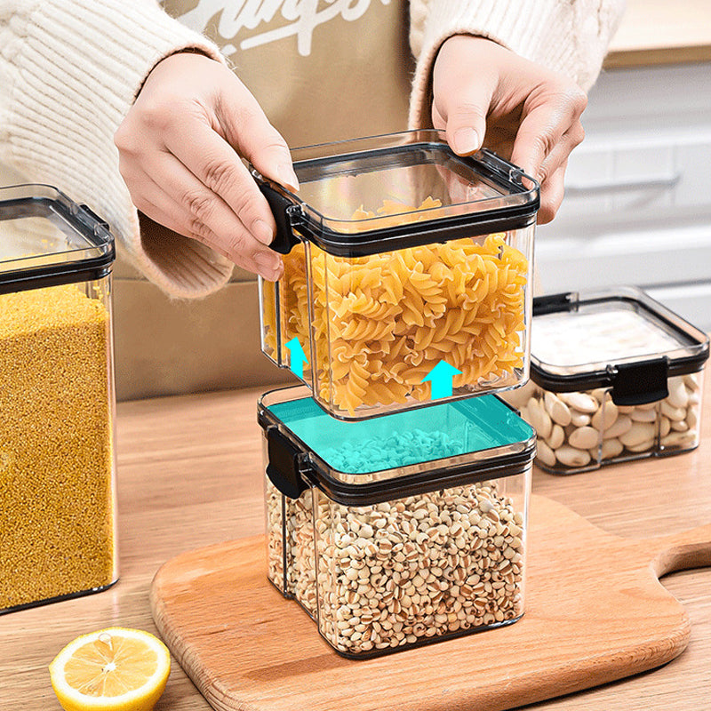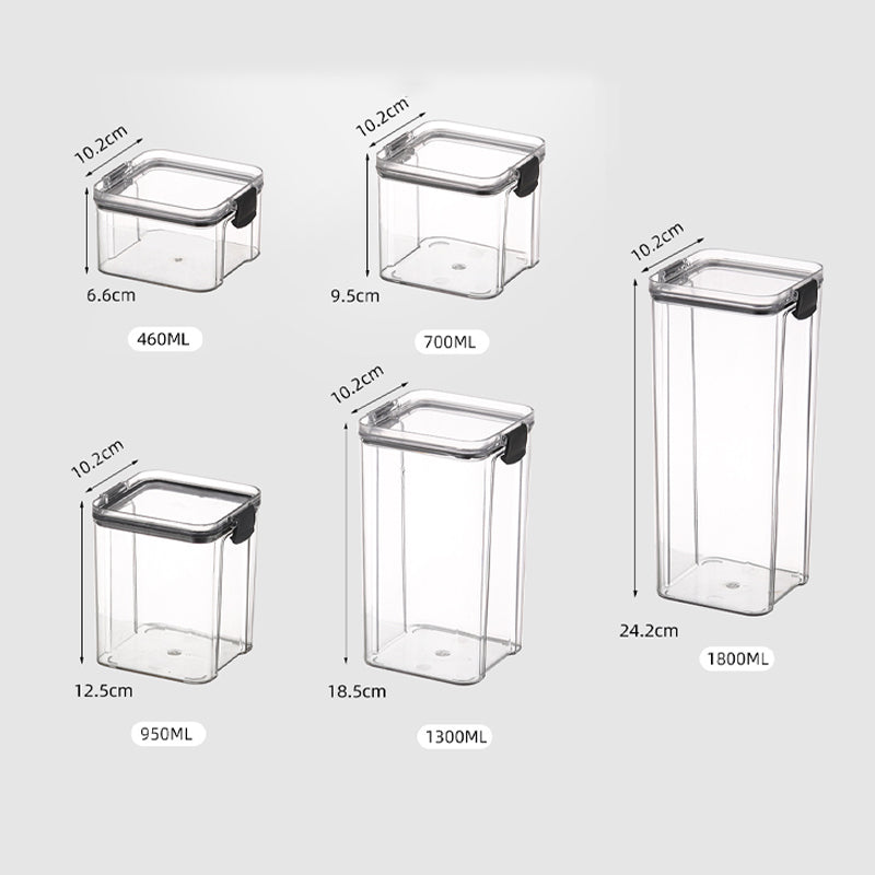 - Alsidighed: Vores Air Seal opbevaringsboks er alsidige opbevaringsløsninger, der kan bruges i forskellige omgivelser og til forskellige formål. De er ideelle til opbevaring af tørvarer, såsom korn og snacks, men kan også bruges til at konservere hjemmelavet syltetøj, pickles og saucer.