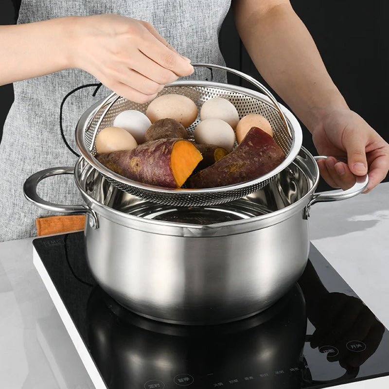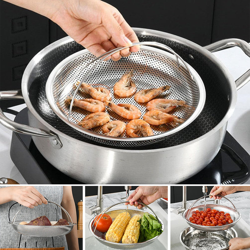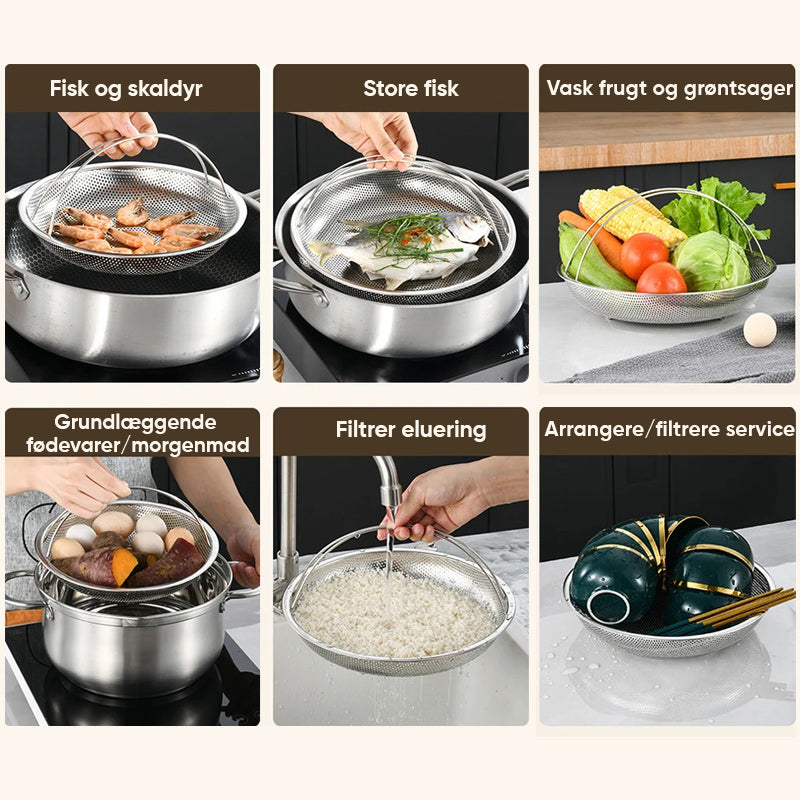 【Multifunktionel】 Den kan bruges som damper til at lave forskellige delikatesser, og den kan også bruges til at filtrere vand til grøntsager og frugter.