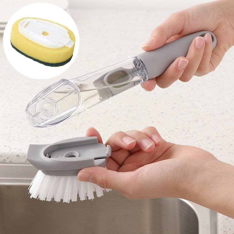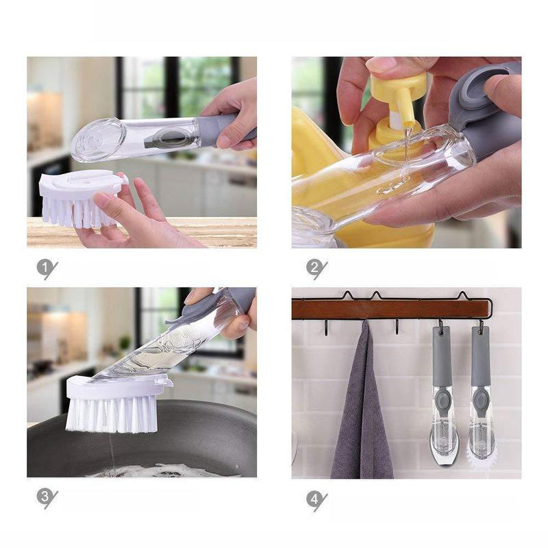 - NEMT AT BRUGE: Du skal blot åbne låget for enden af børsten for at sprøjte rengøringsvæske ind i håndtaget og trykke på knappen for at begynde at rengøre dit køkken og meget mere uden at røre ved rengøringsvæsken direkte. (Silikoneknappen giver en god forseglingsevne uden frygt for lækage.)