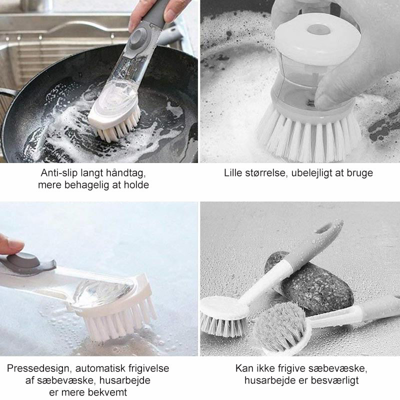 - KOMFORTABELT HÅNDTAG: Det ergonomiske skridsikre håndtag ligger godt i hånden, selv når det er vådt og sæbeholdigt. Håndtaget fungerer også som en opvaskemiddelbeholder, som nemt kan fyldes med et hvilket som helst opvaskemiddel.