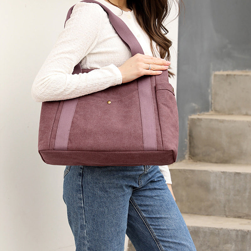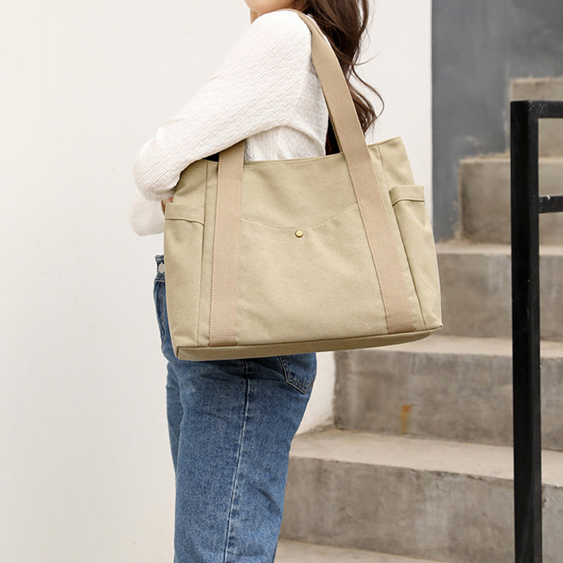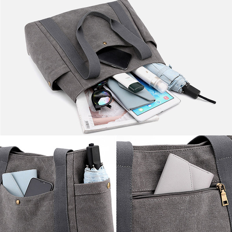 Tasken har sidelommer, frontlommer og tyverisikre baglommer til smart opbevaring og nem adgang.