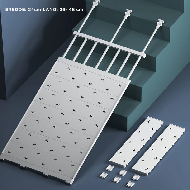 - 1 × Udvideligt spændingshyldestativ til skabsopbevaring