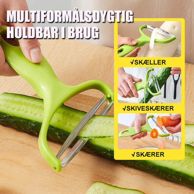 - ☺Ikke bare en skræller: Vores Y-formede skræller kan bruges som makulator, skræller eller skærer. Du kan bruge den til at skære, snitte eller rive dine kartofler, gulerødder, æbler og meget mere. Perfekt til din madlavning!