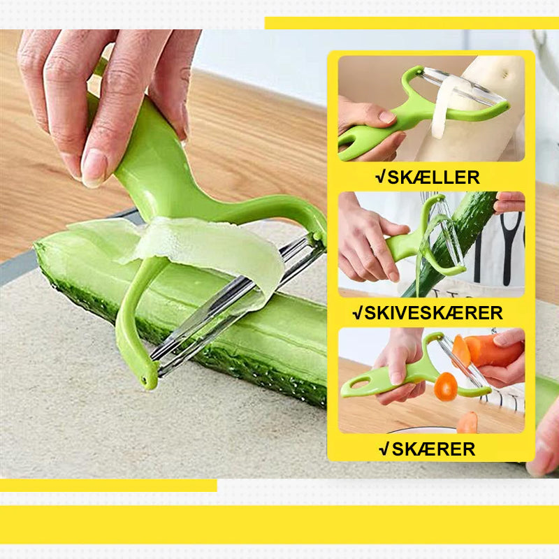 - ☺Must-Have til køkkenet: Lad bladet glide ned langs frugt- og grøntsagerne. Gør det på få sekunder, der plejede at tage flere minutter. Madlavning har aldrig været nemmere.