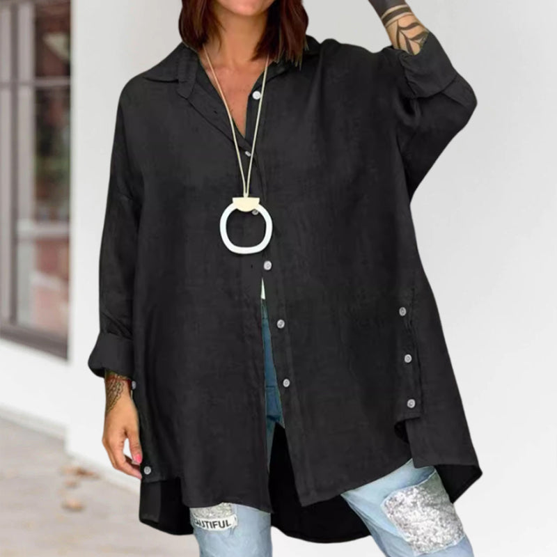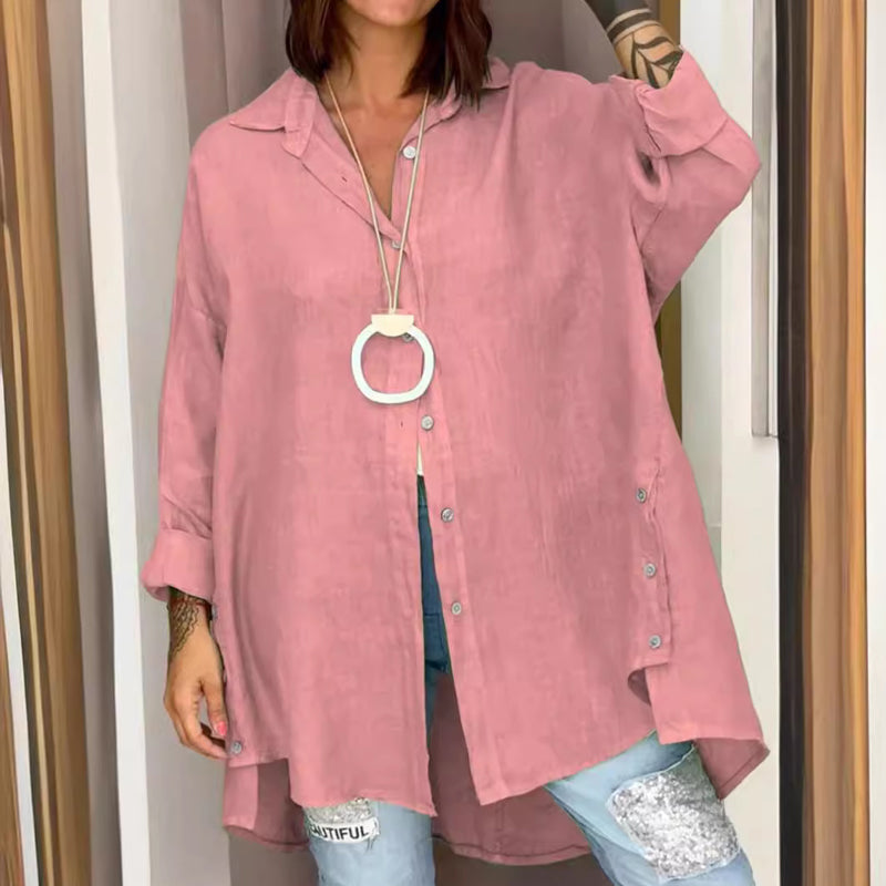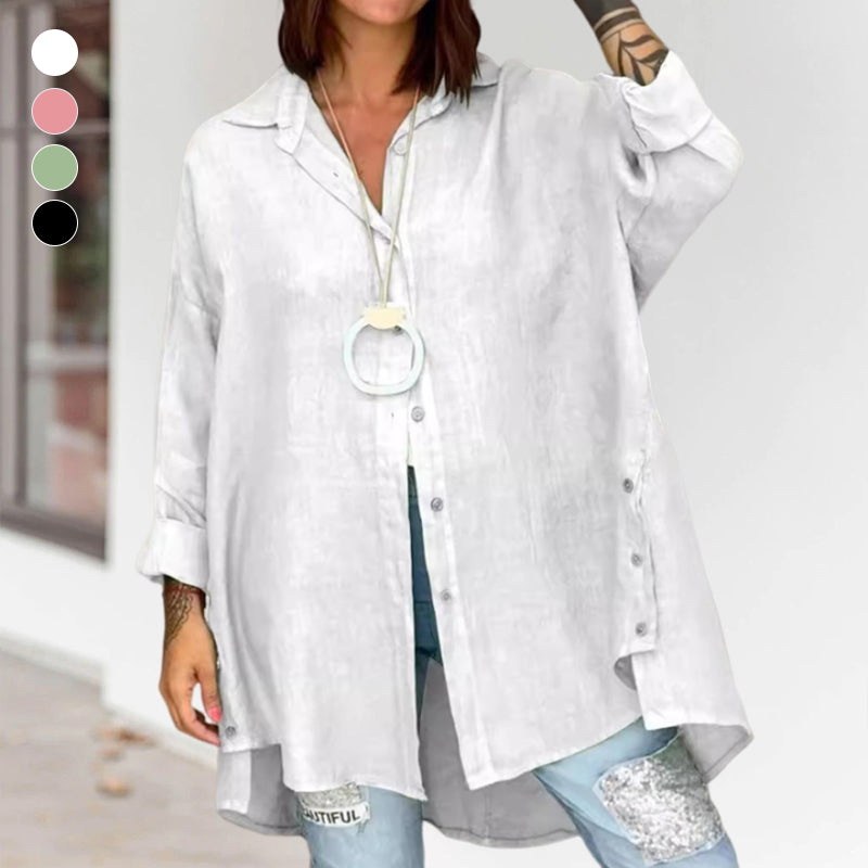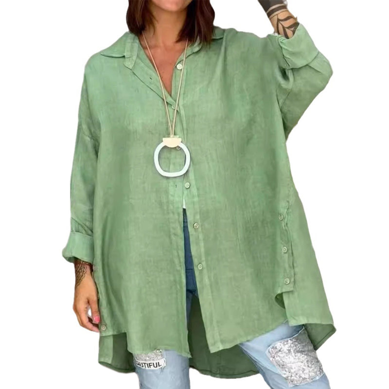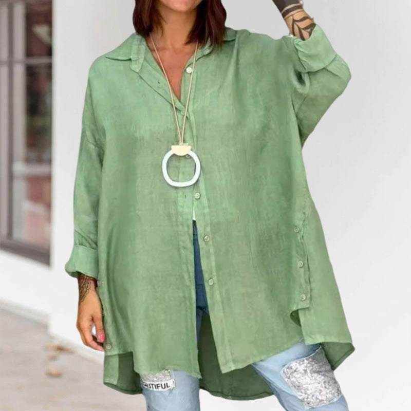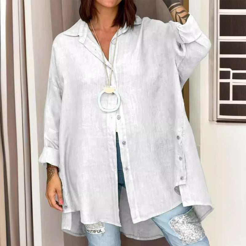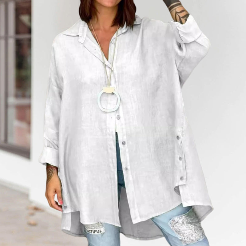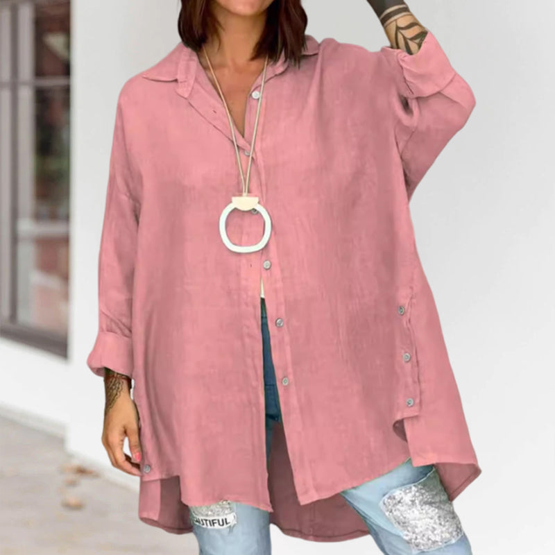 - 1* Ensfarvet casual skjorte i hør