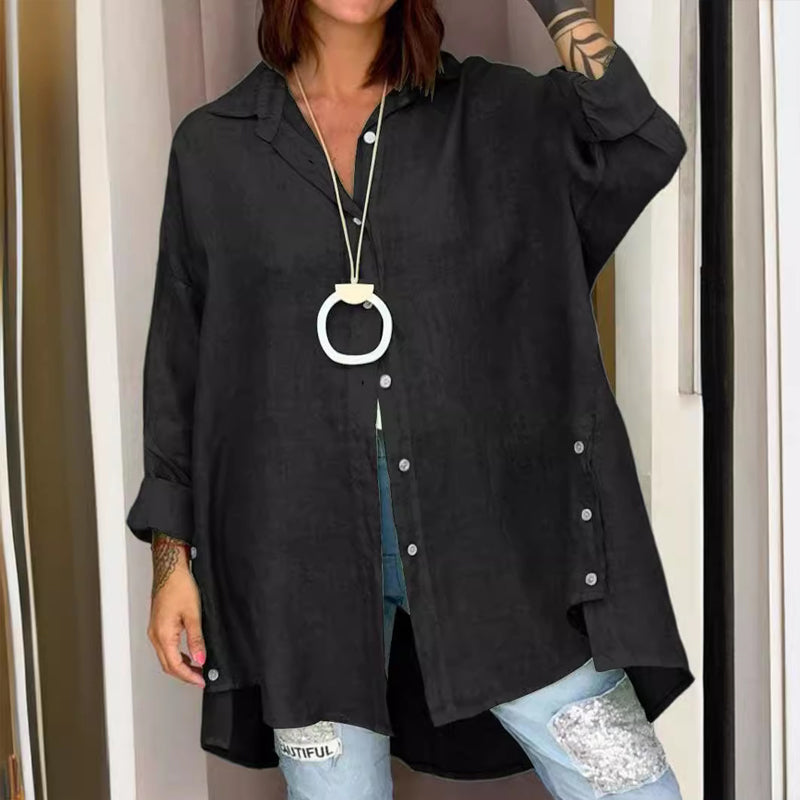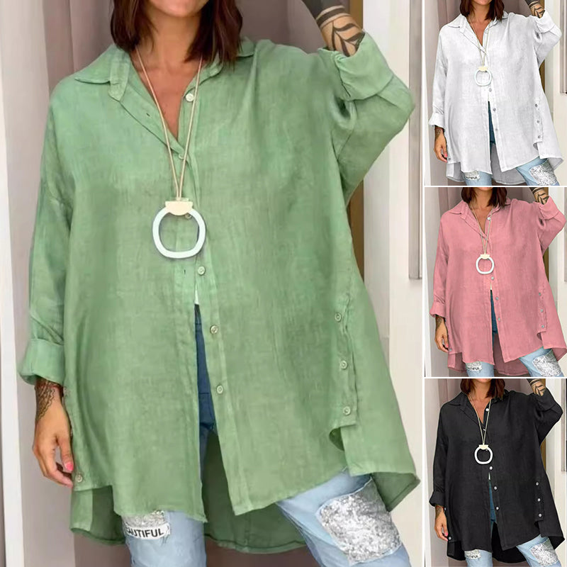 Klassisk design: klassisk V-formet skjortemanchetdesign, knaplukning, lange ærmer, afslappet pasform, behageligt og køligt materiale, lige kant og ensfarvet.