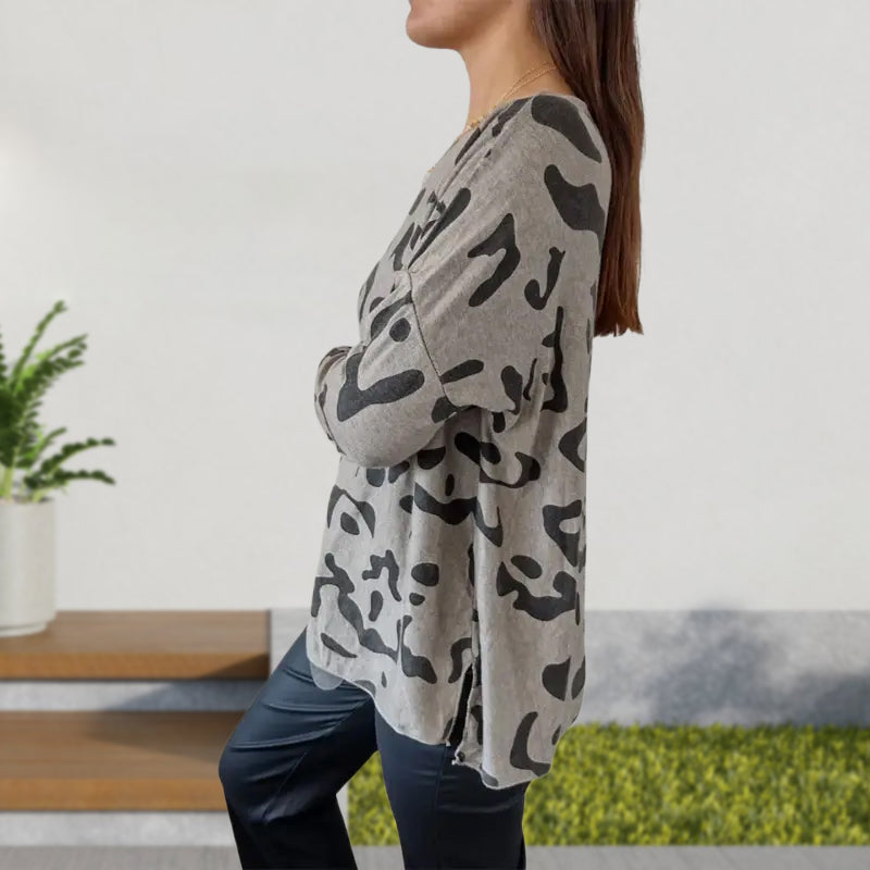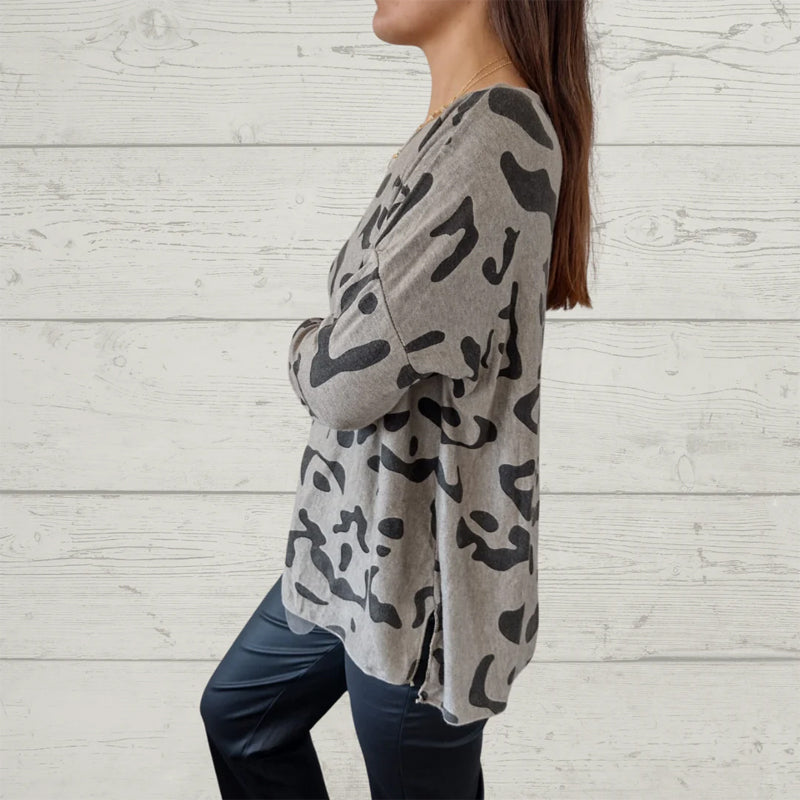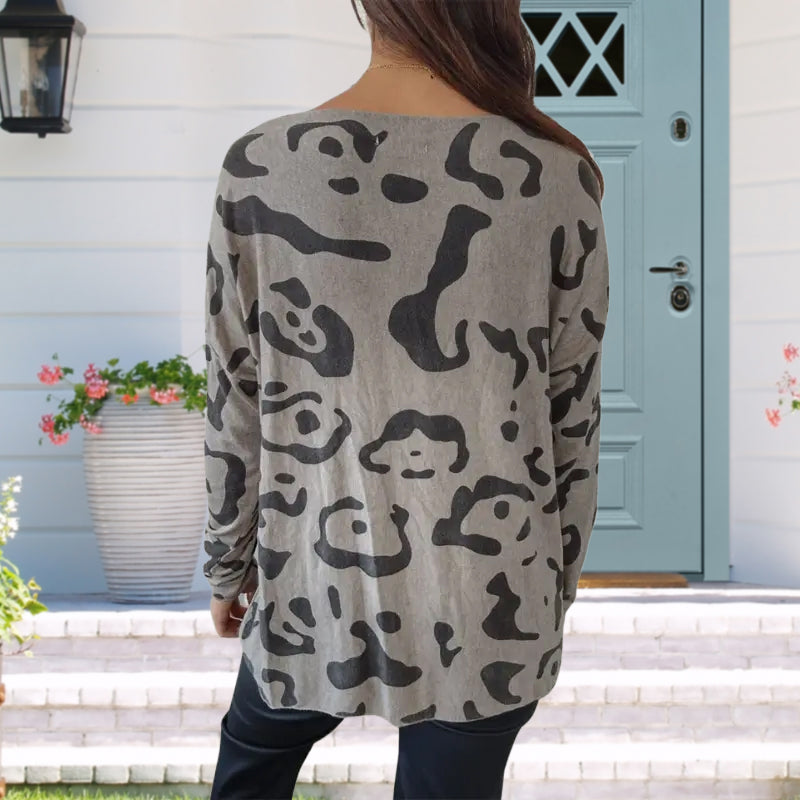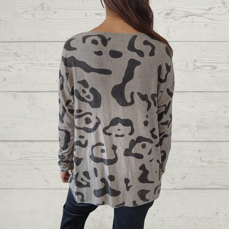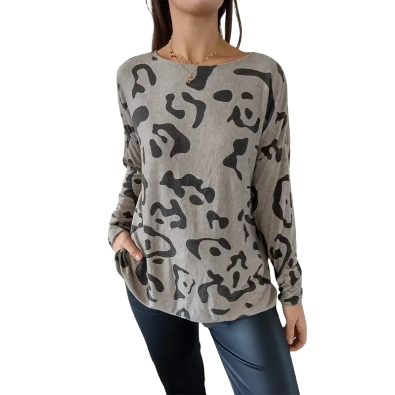 UNIKT DYREMØNSTER: Det iøjnefaldende dyreprint giver t-shirten et dristigt og stilfuldt look. Det får den til at skille sig ud og appellere til de modebevidste.