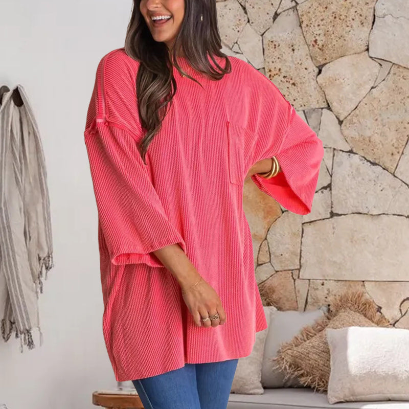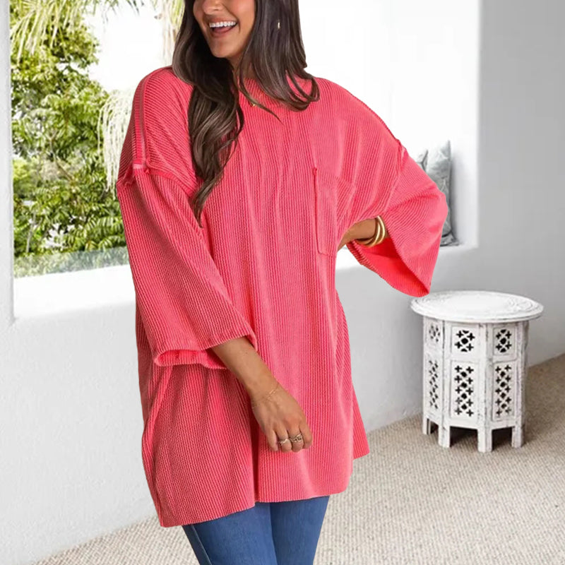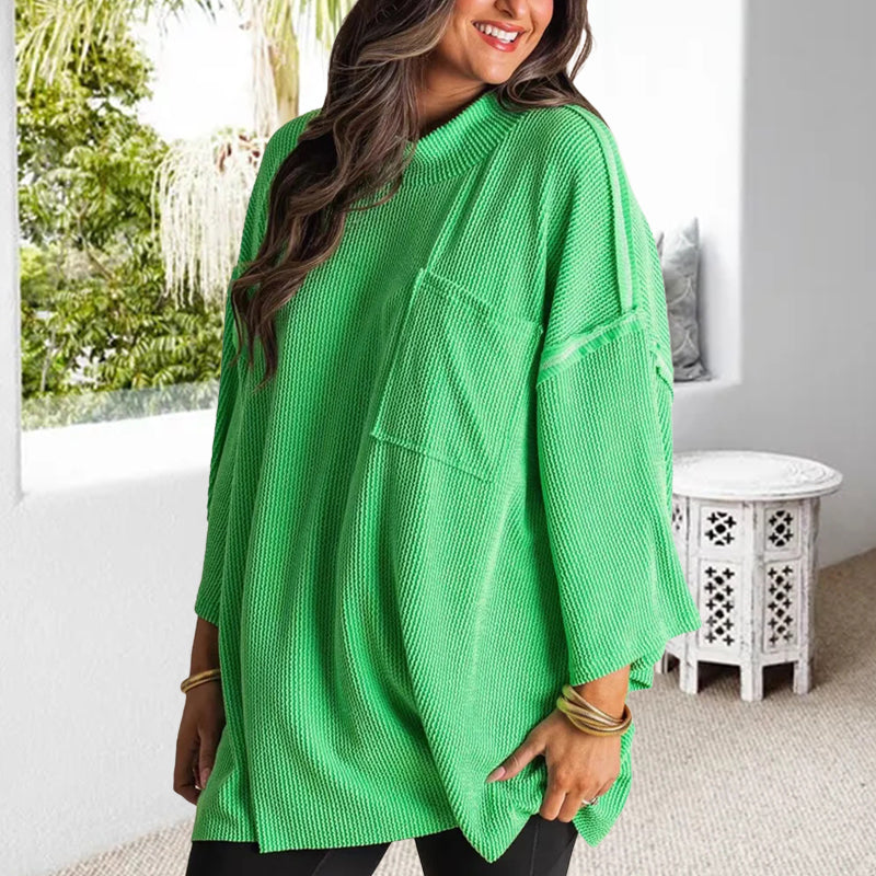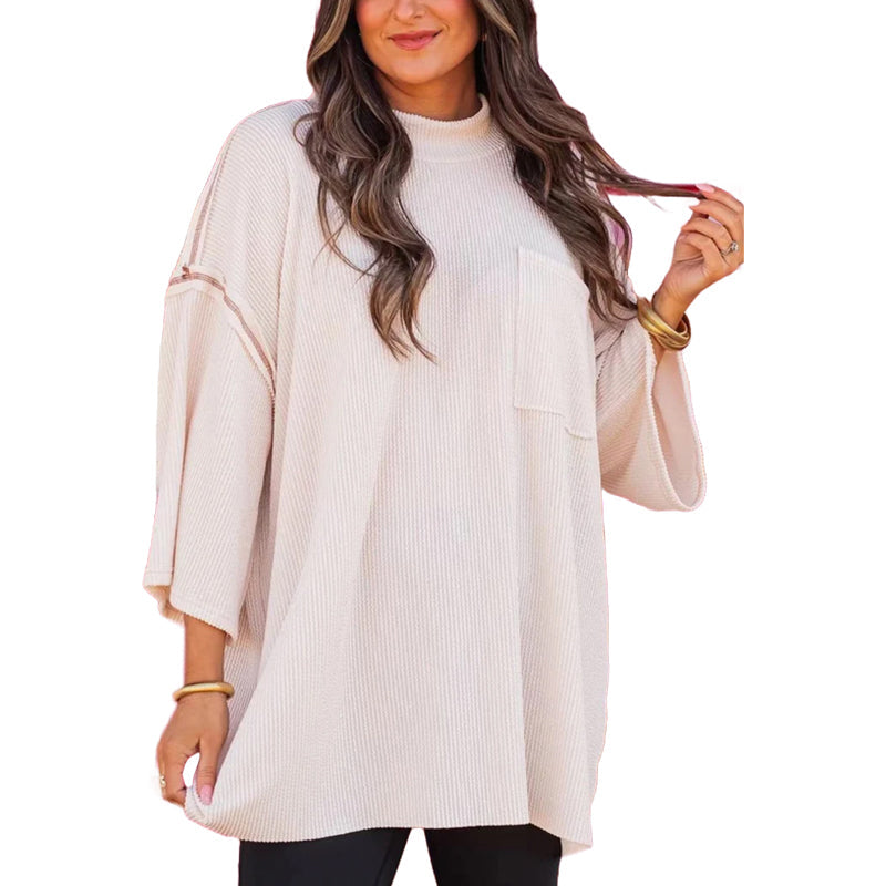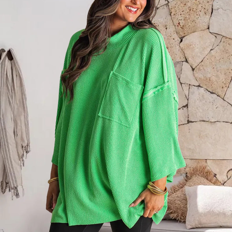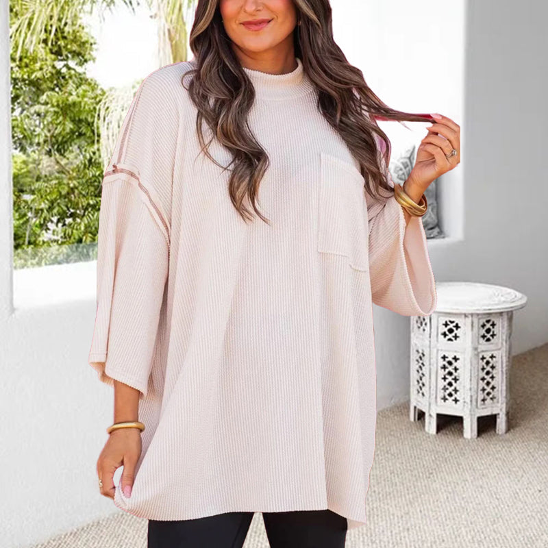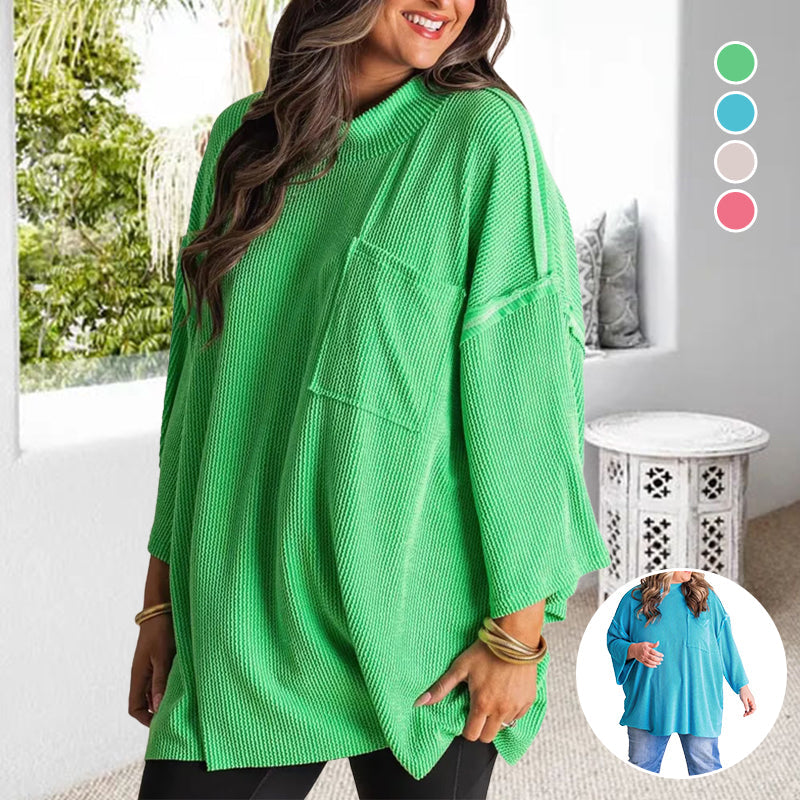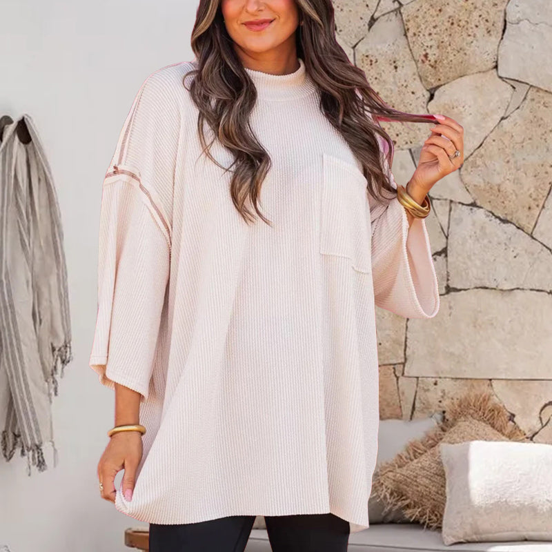 Denne stilfulde og behagelige top har en unik urban ribstruktur, synlige sømme og en overdimensioneret forlomme. Det overdimensionerede snit giver et strejf af originalitet til ethvert outfit.