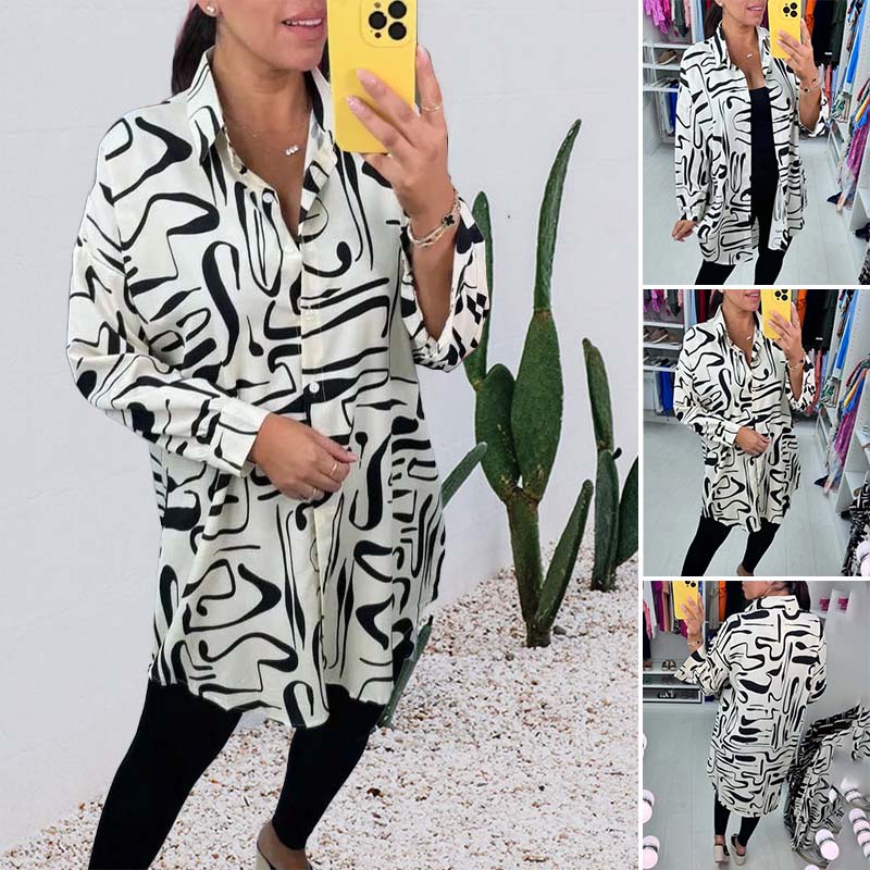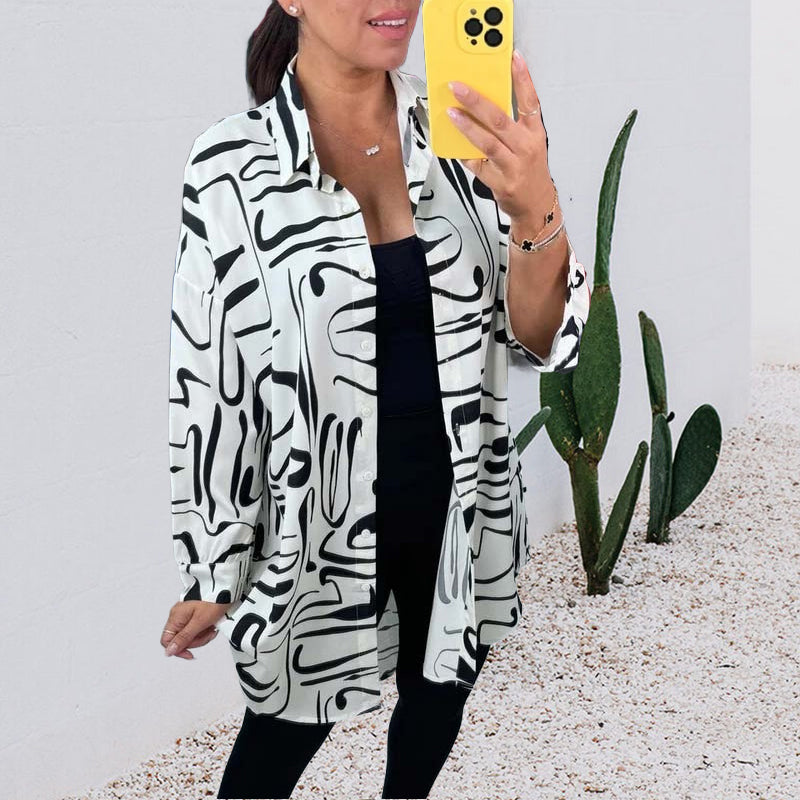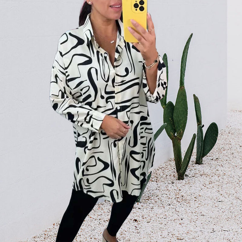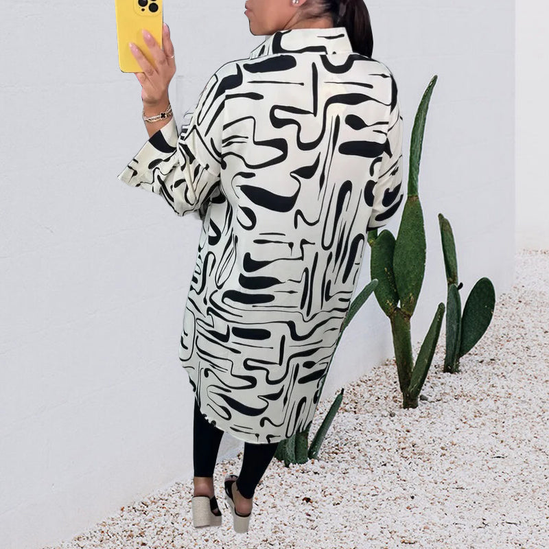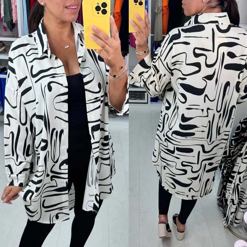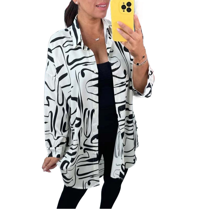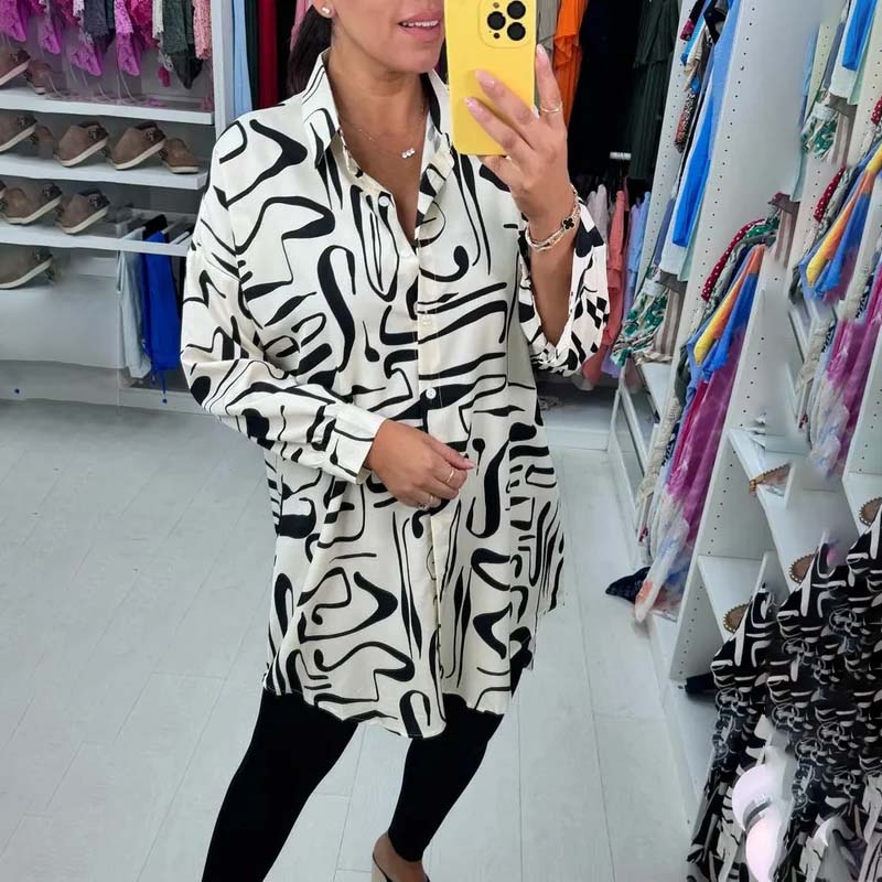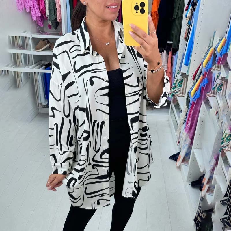 • Indlæs billede til gallerivisning Overdimensioneret skjorte med abstrakt print