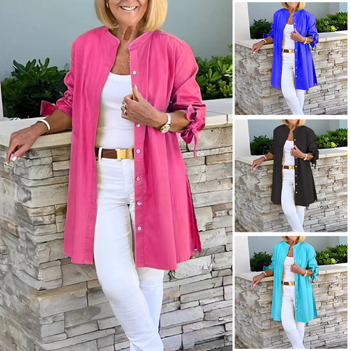Ensfarvet chiffonskjorte med V-hals og løse ærmer