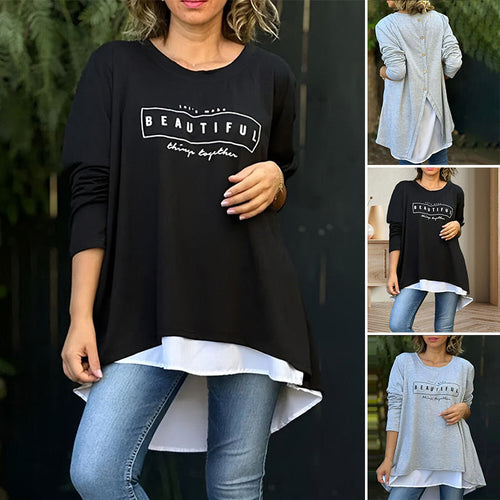 Rundhalset flæsekant Top i bomuld og hør mellem ærmer
