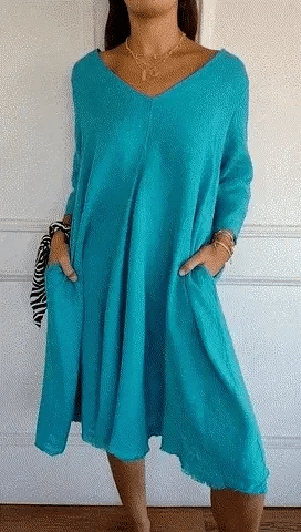 • Indlæs billede til gallerivisning Kjole med V-hals og sidelommer til kvinder